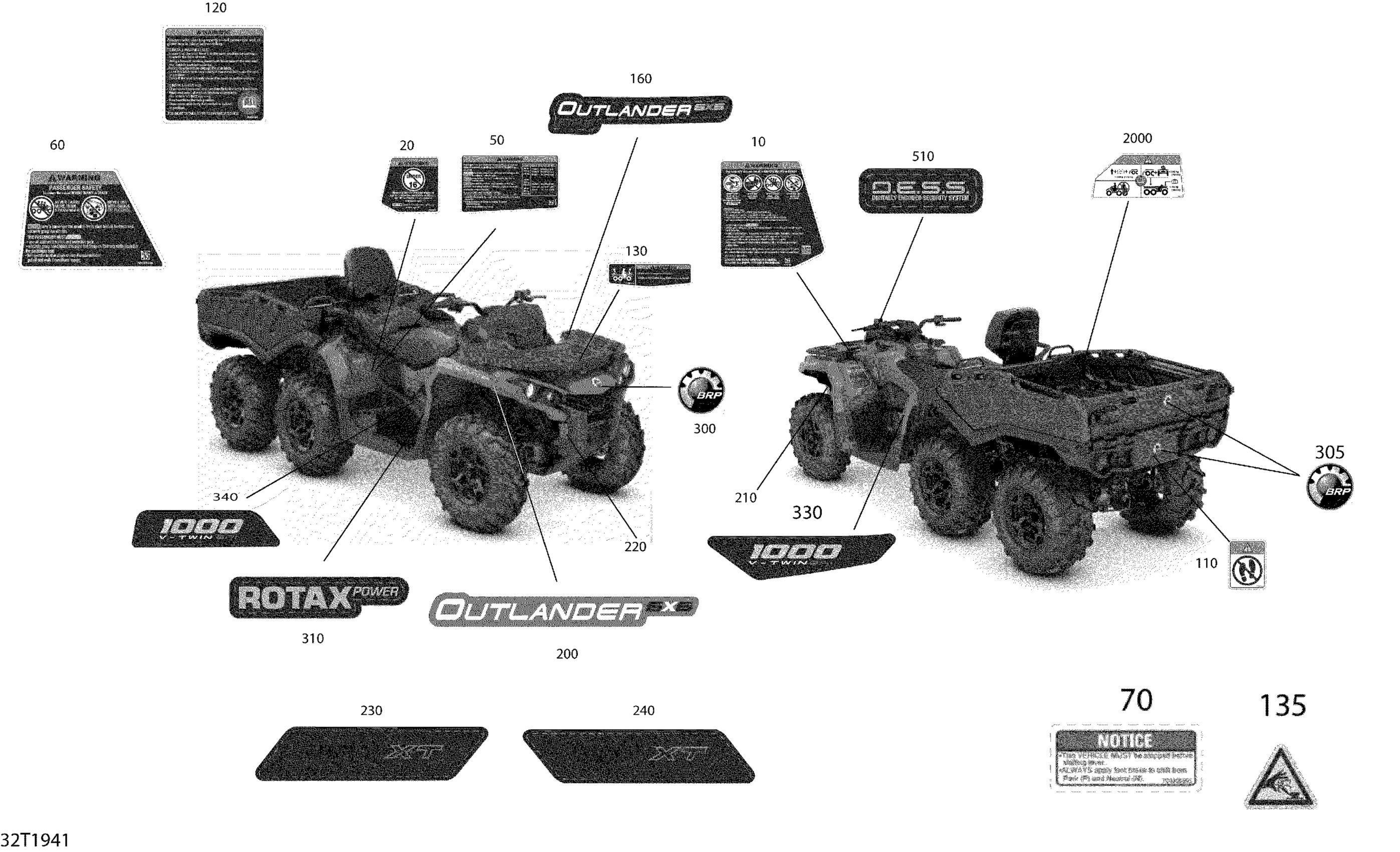 Can-Am Outlander MAX 6X6 - 1000 EFI - 2019 Decals Outlander MAX - 6X6 - XT - North America Diagram