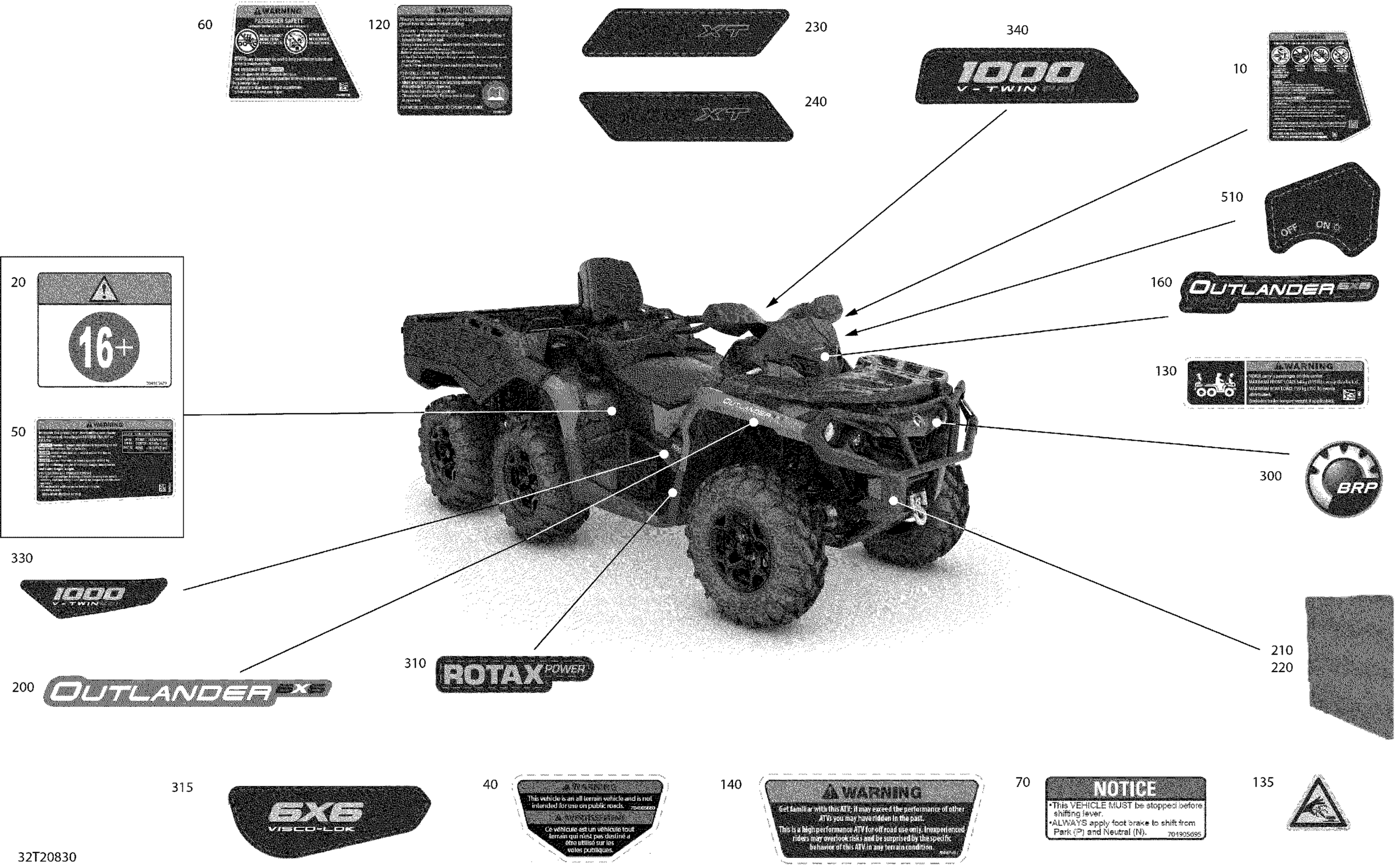Can-Am Outlander MAX 6X6 - 1000 EFI - 2020 Decals - XT Diagram