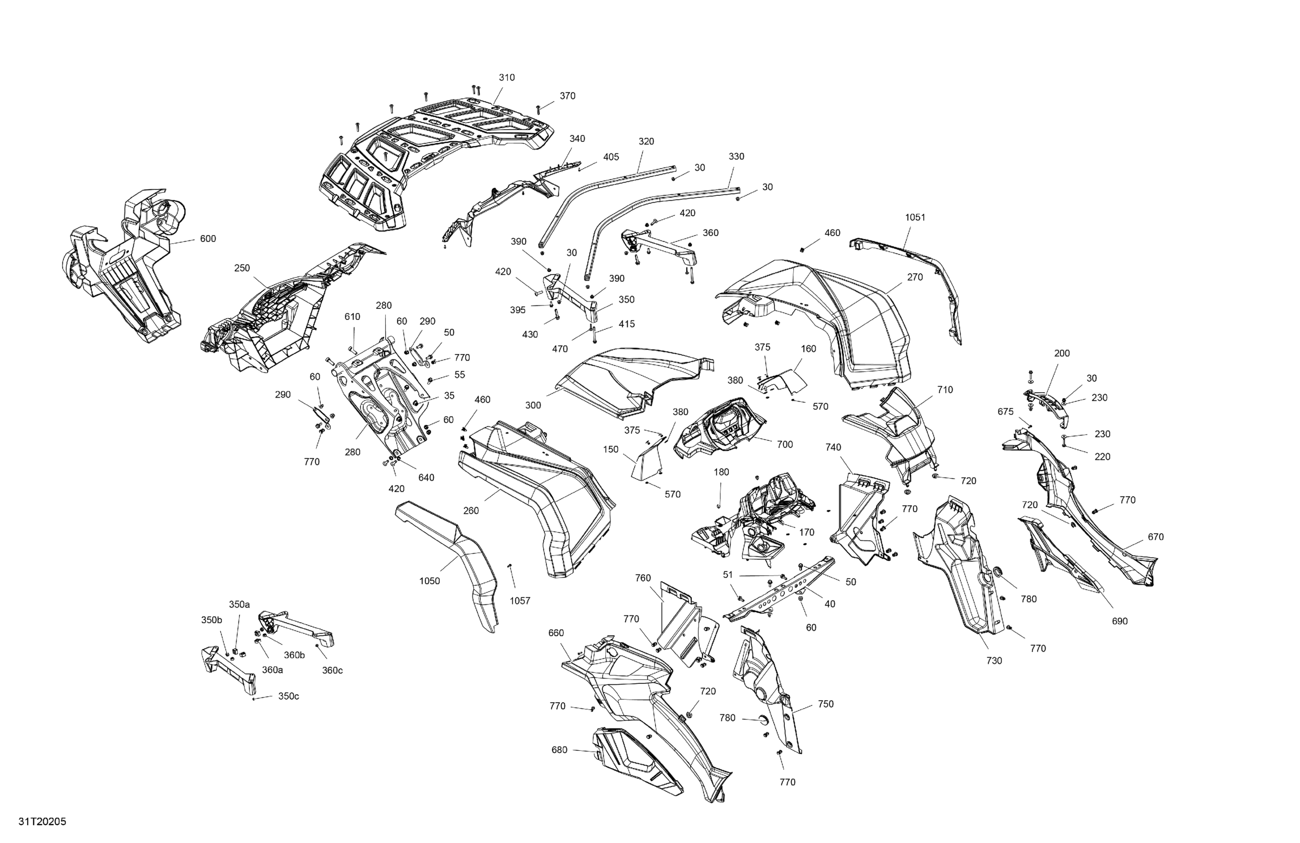Can-Am Outlander T 570 EFI - PRO+ - T Regulation, 2020 Body - Front Section - PRO+ Diagram