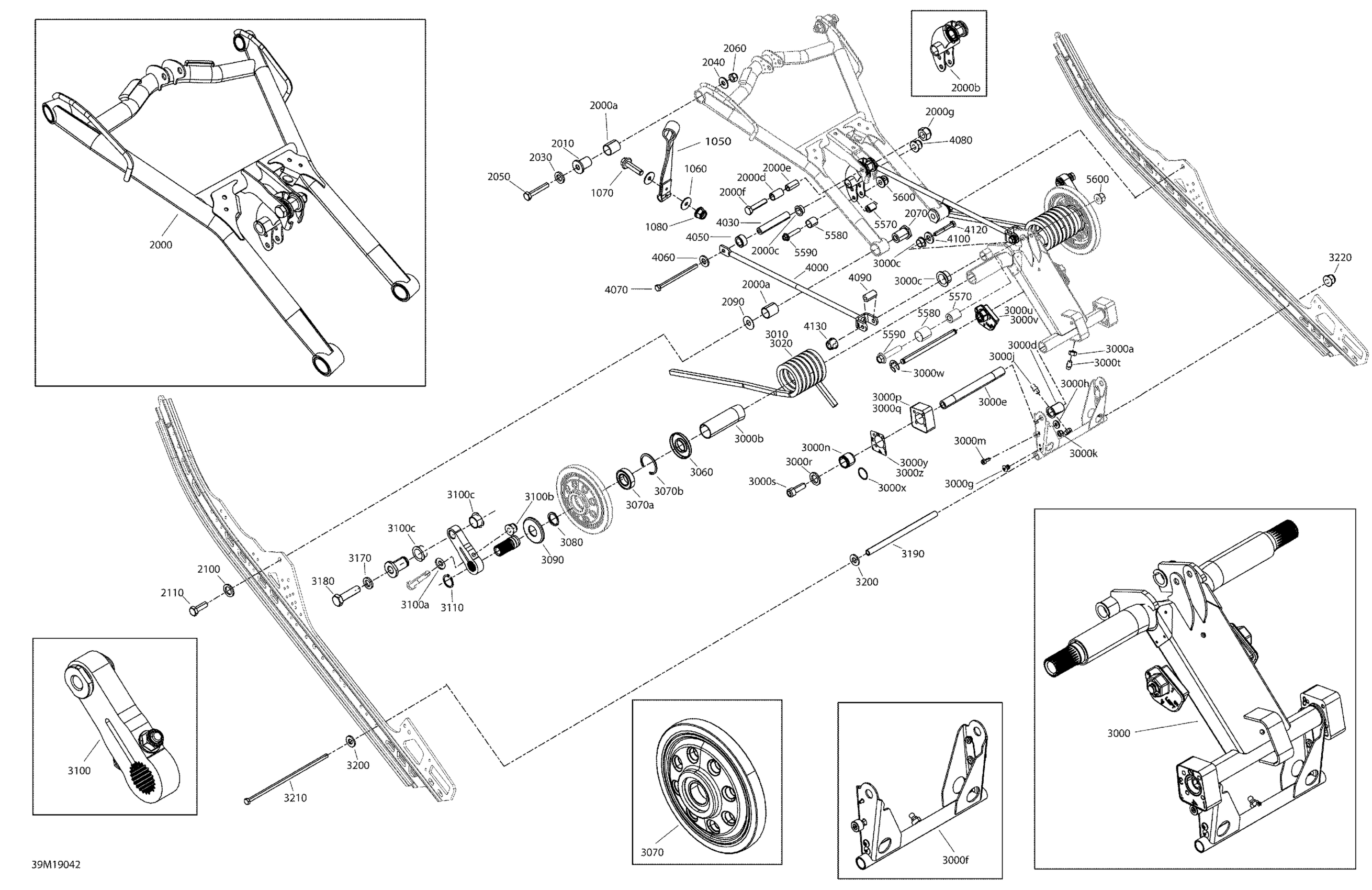 Ski-Doo 003 - RENEGADE 600R E-TEC - Enduro, 2019 08- Rear Suspension - Enduro - Upper Section Diagram