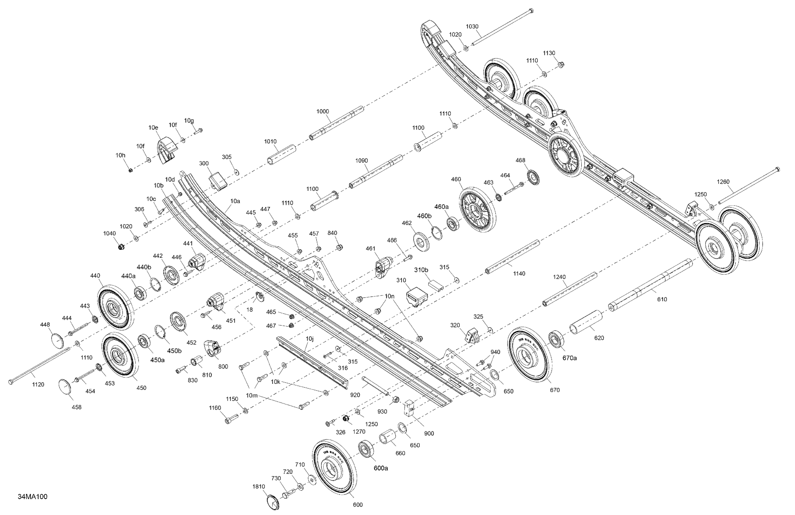 Ski-Doo 003 - RENEGADE 600R E-TEC - X Iron Dog - North America, 2021 05- Suspension - Rear - Lower Section Diagram