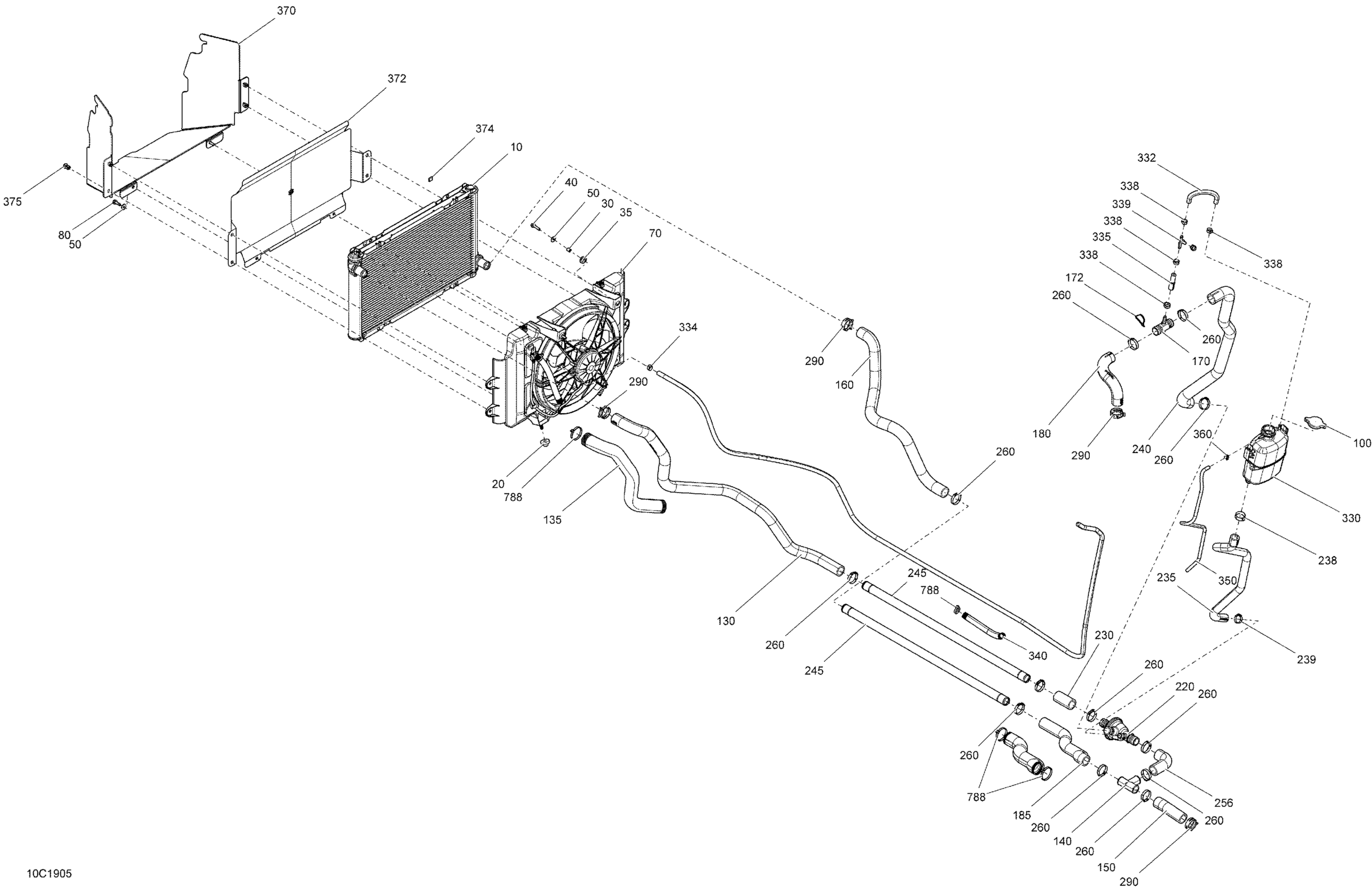 Can-Am Traxter HD10 - T1B Series, 2019 Cooling - Except CAB Diagram