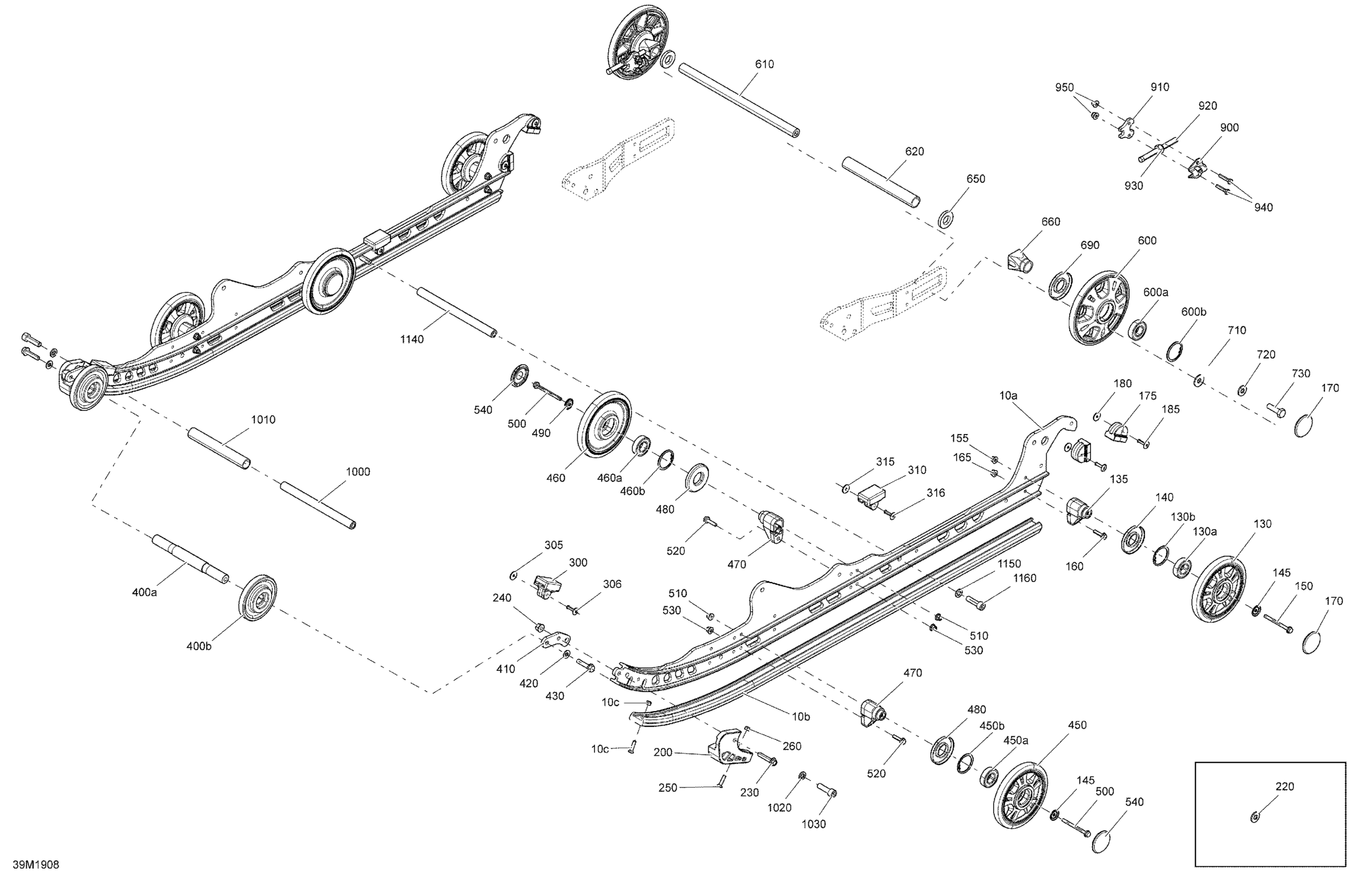 Ski-Doo Tundra 600HO E-TEC, 2019 Rear Suspension - Xtreme - Lower Section Diagram