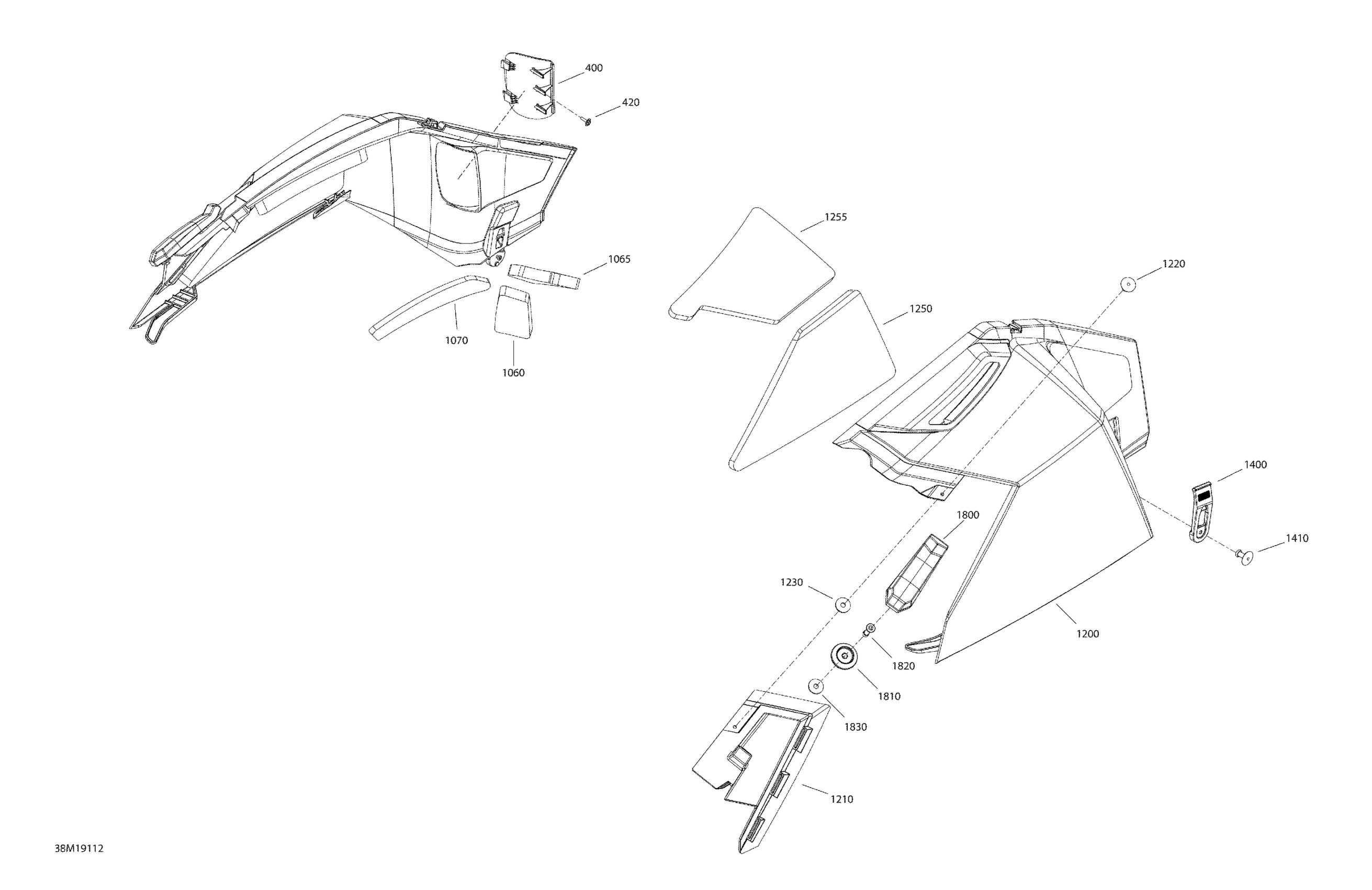 Ski-Doo Tundra 600HO E-TEC, 2019 Hood - Panel Section Diagram