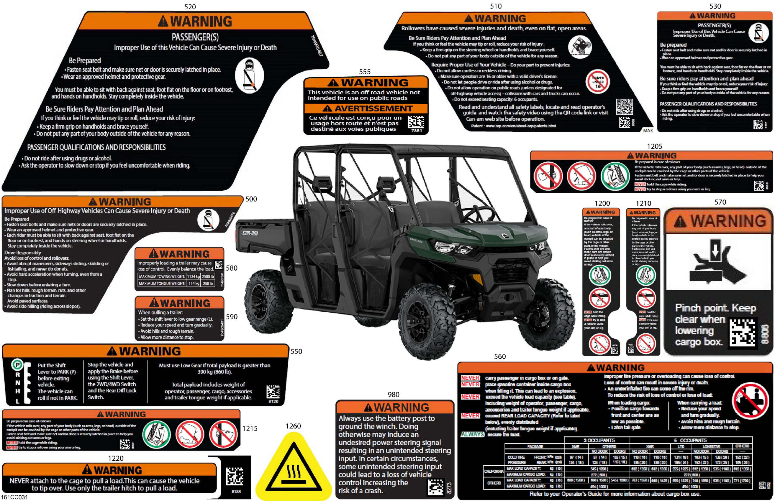 Can-Am Defender MAX HD7 - DPS - 2023 Body - Warning Decals Diagram