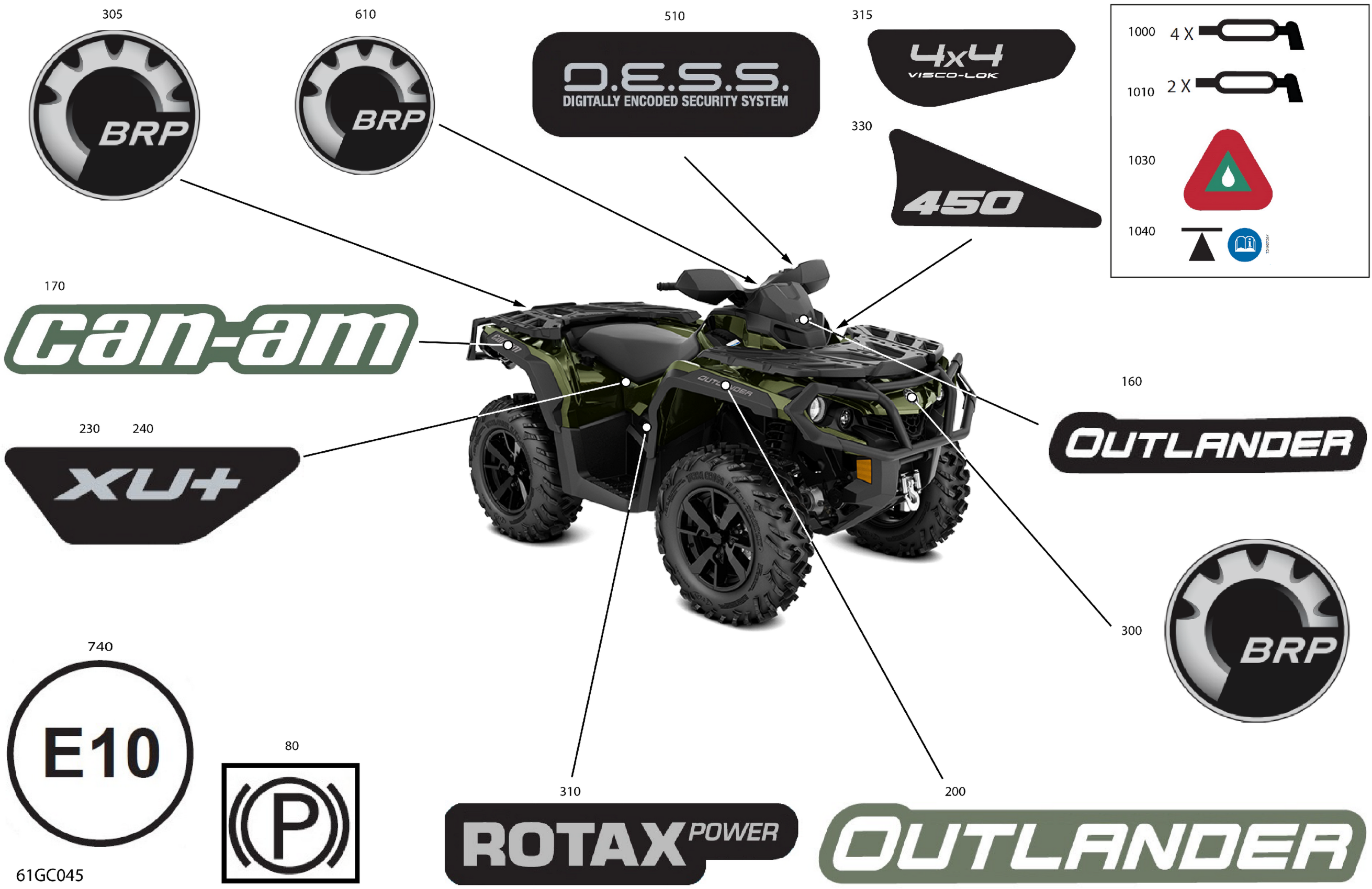 Can-Am Outlander T 450 EFI - XU+ - T Regulation, 2023 Body - Decals Diagram