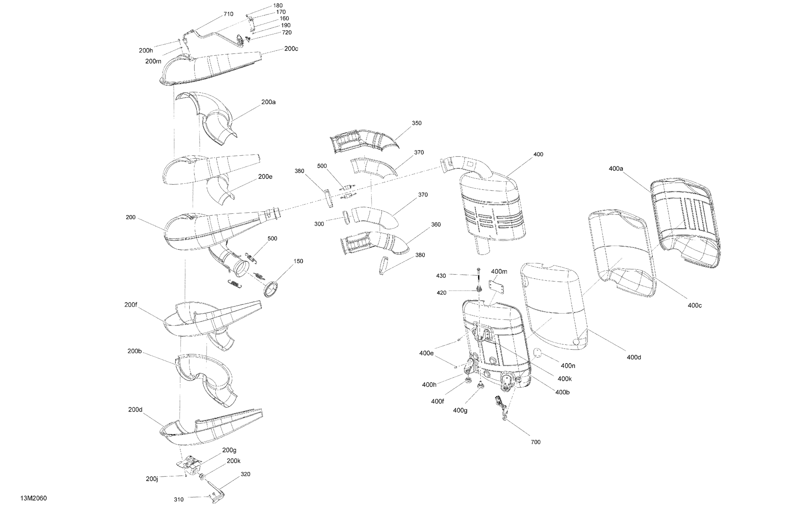 Ski-Doo 005.1 - SUMMIT X- EXPERT - 154" Black/Orange - 2020 Engine - Exhaust Diagram