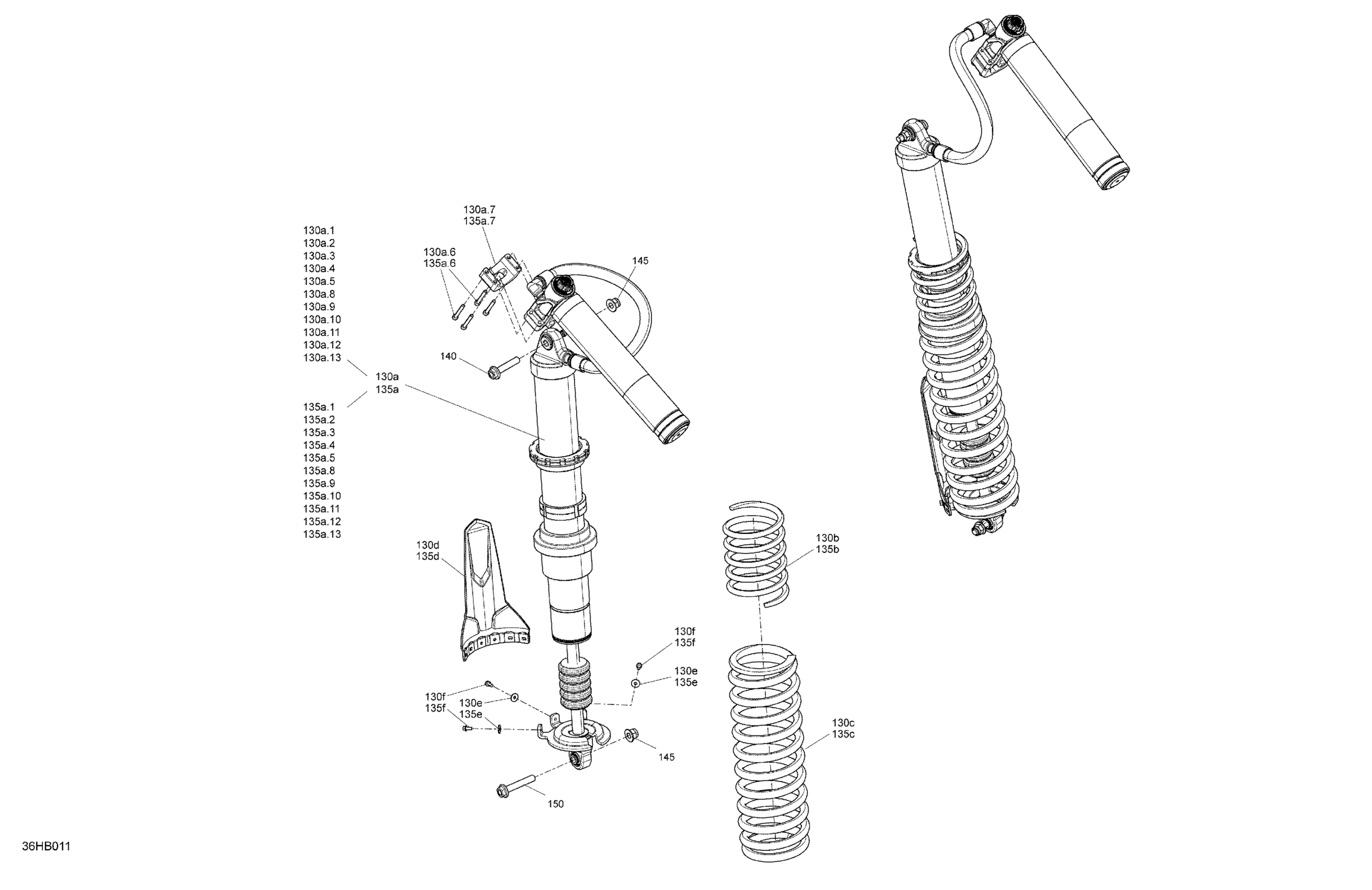 Can-Am Maverick Turbo RR - XRS - 2022 Suspension - Rear Shocks - Without Smart-ShoX Diagram