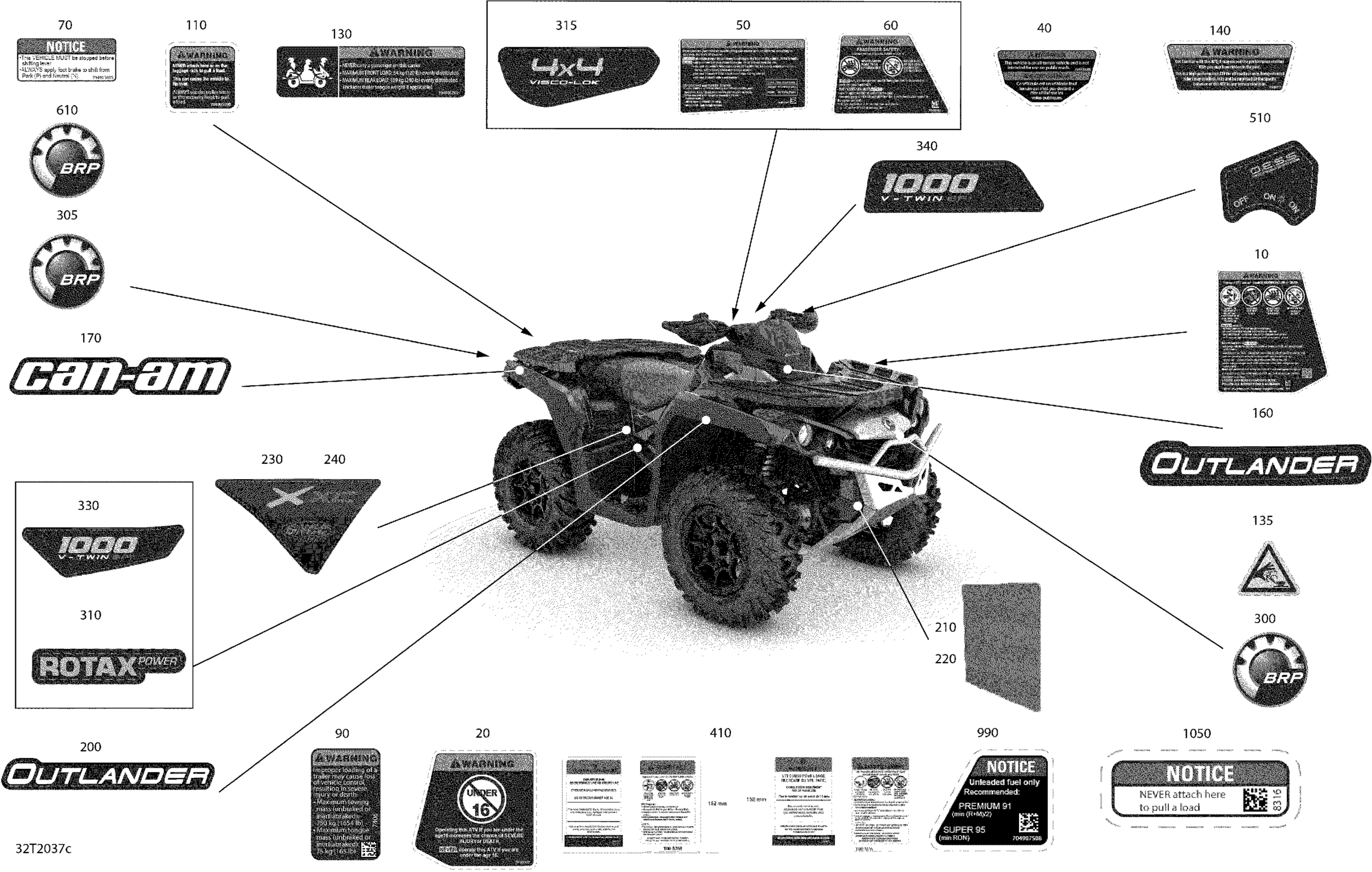 Can-Am Outlander 1000R EFI - XT_XTP_XXC - 2020 Decals - XXC Diagram