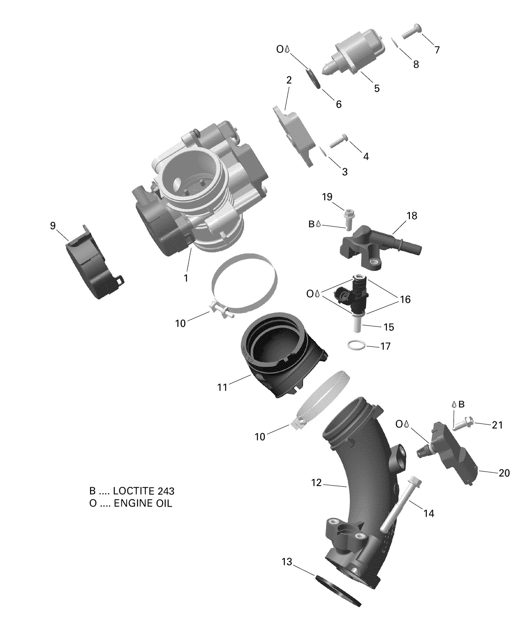 Can-Am Outlander 450 EFI - 2019 Air Intake Manifold And Throttle Body Except T3 Diagram