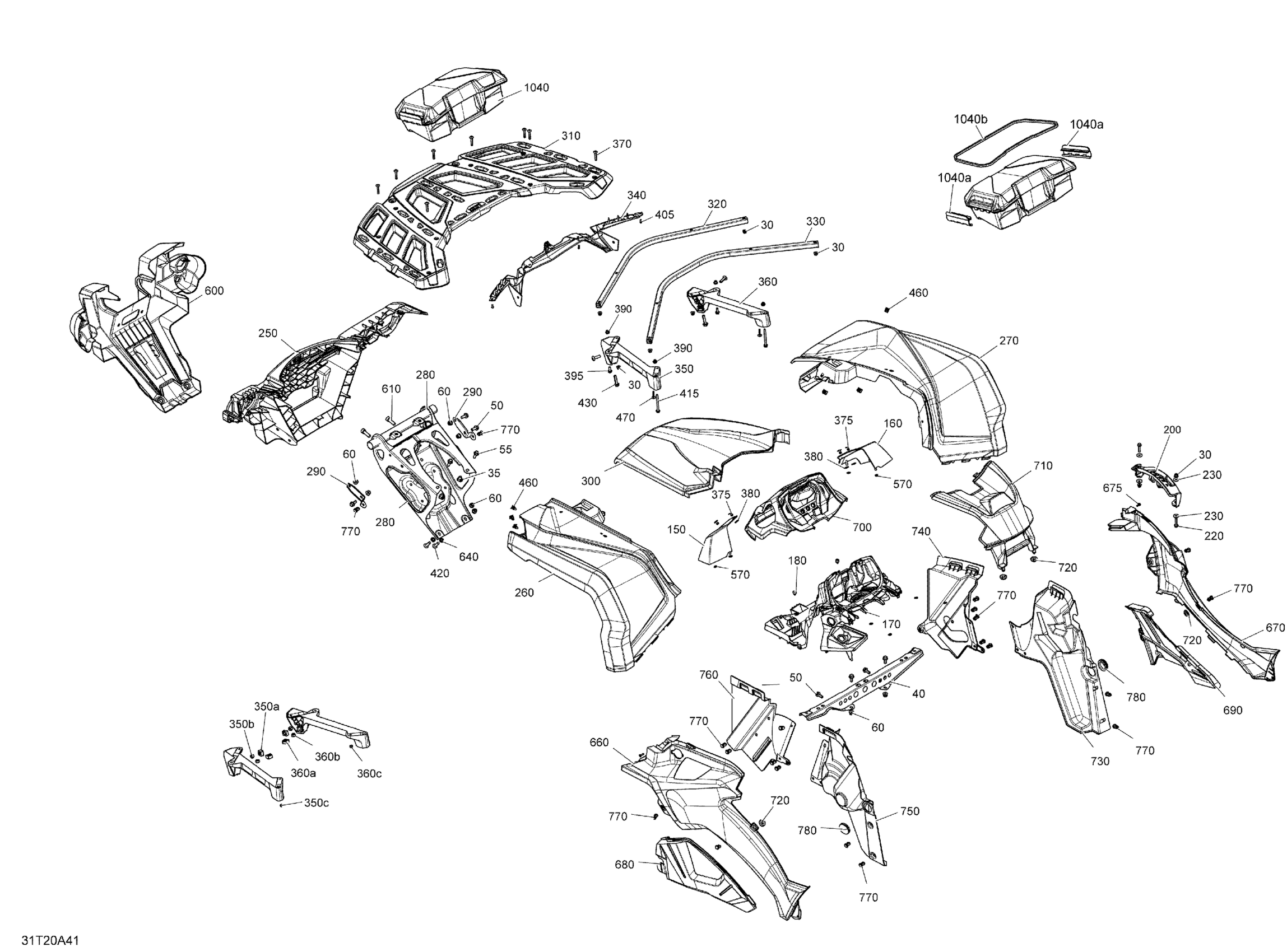 Can-Am Outlander T MAX 6X6 - 650 EFI - T Regulation, 2020 Body - Front Section - Squadron Green Diagram