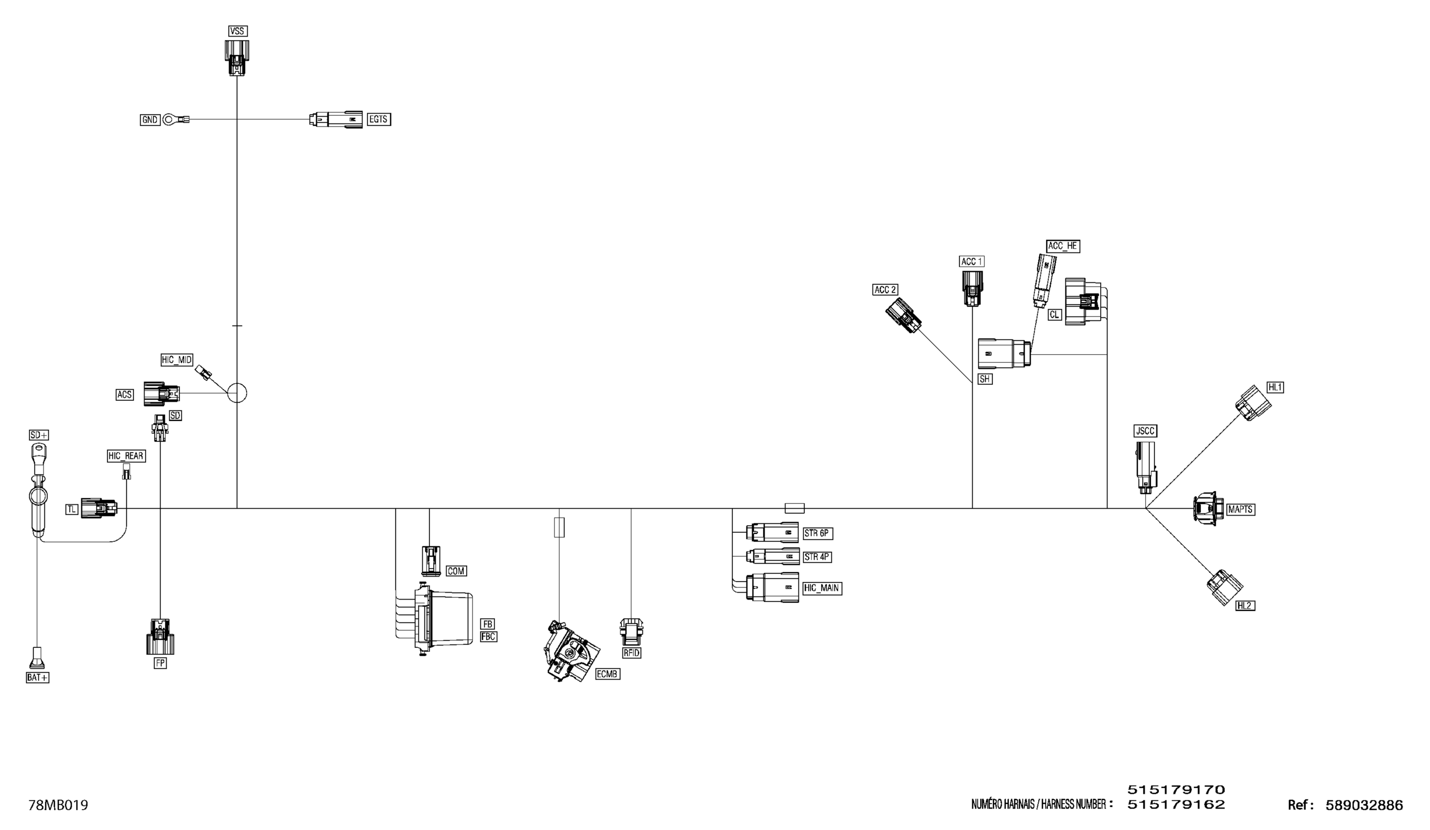 Ski-Doo RENEGADE 600R E-TEC - Enduro - 2022 Electric - Main Harness - 515179162 Diagram