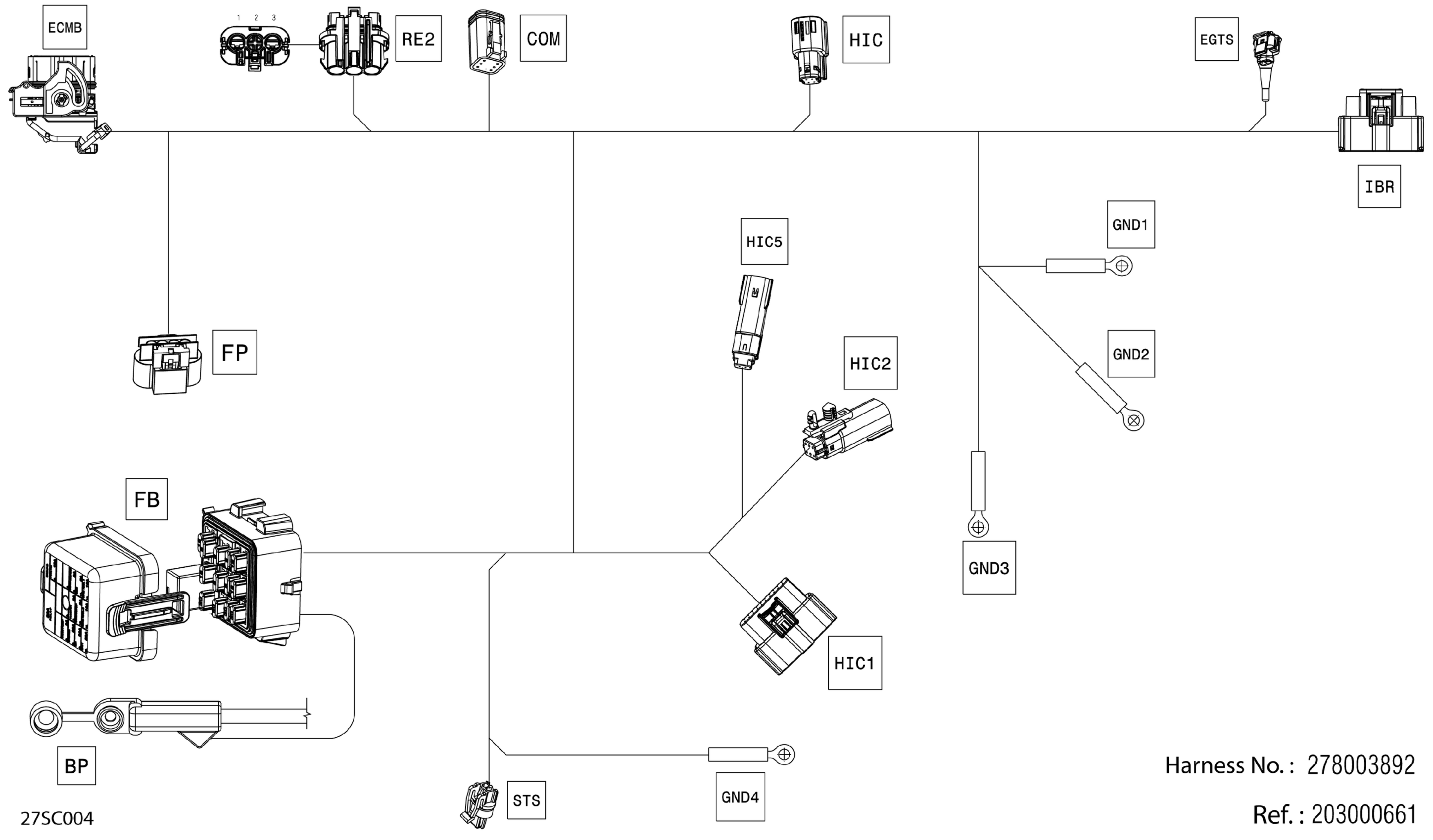 Sea-doo GTX PRO 130 iBR (Rental), 2023 Electric - Main Harness - 278003891 Diagram