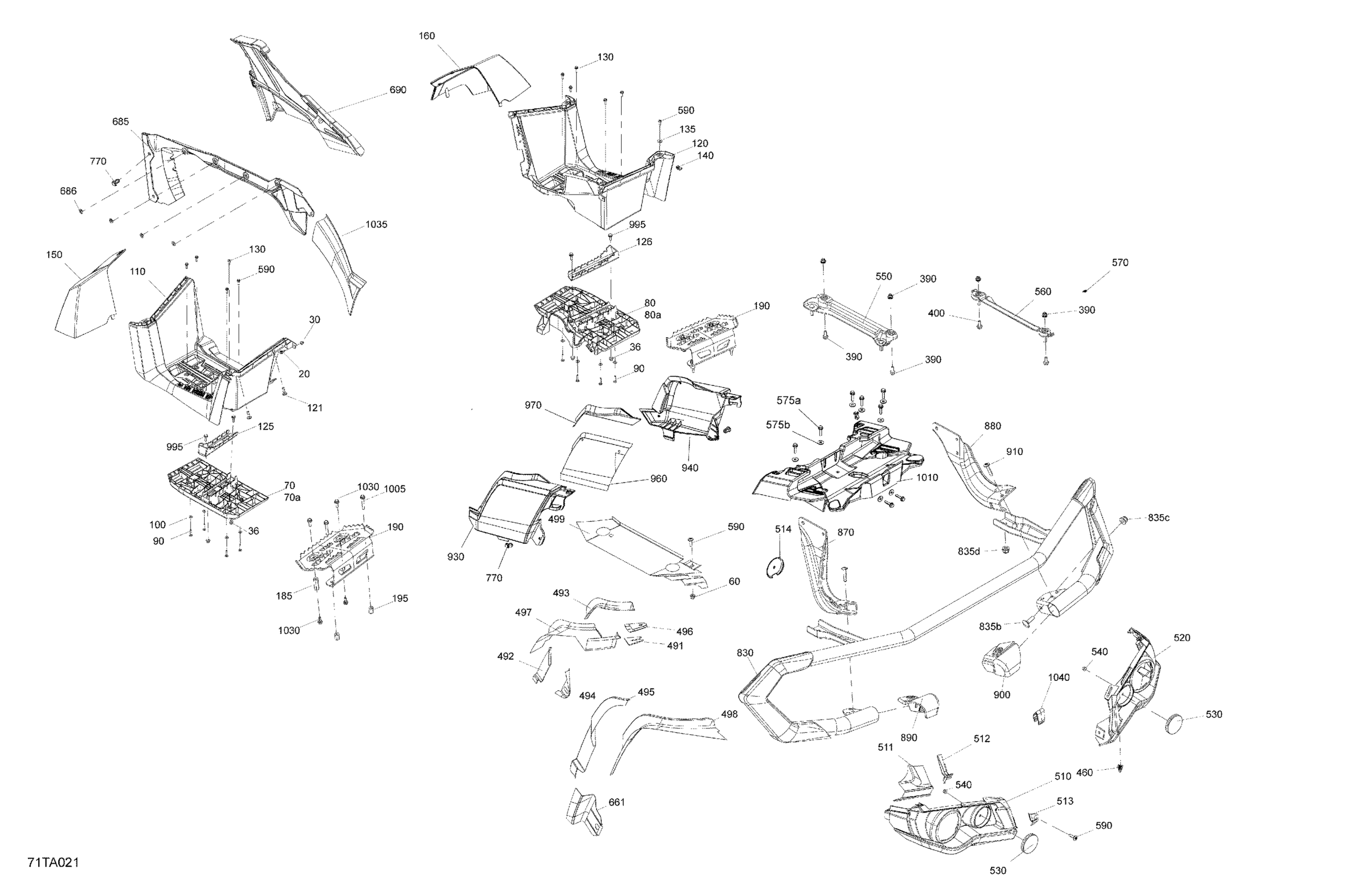 Can-Am Outlander 1000R EFI - XMR - 2021 Body - Rear Section Diagram