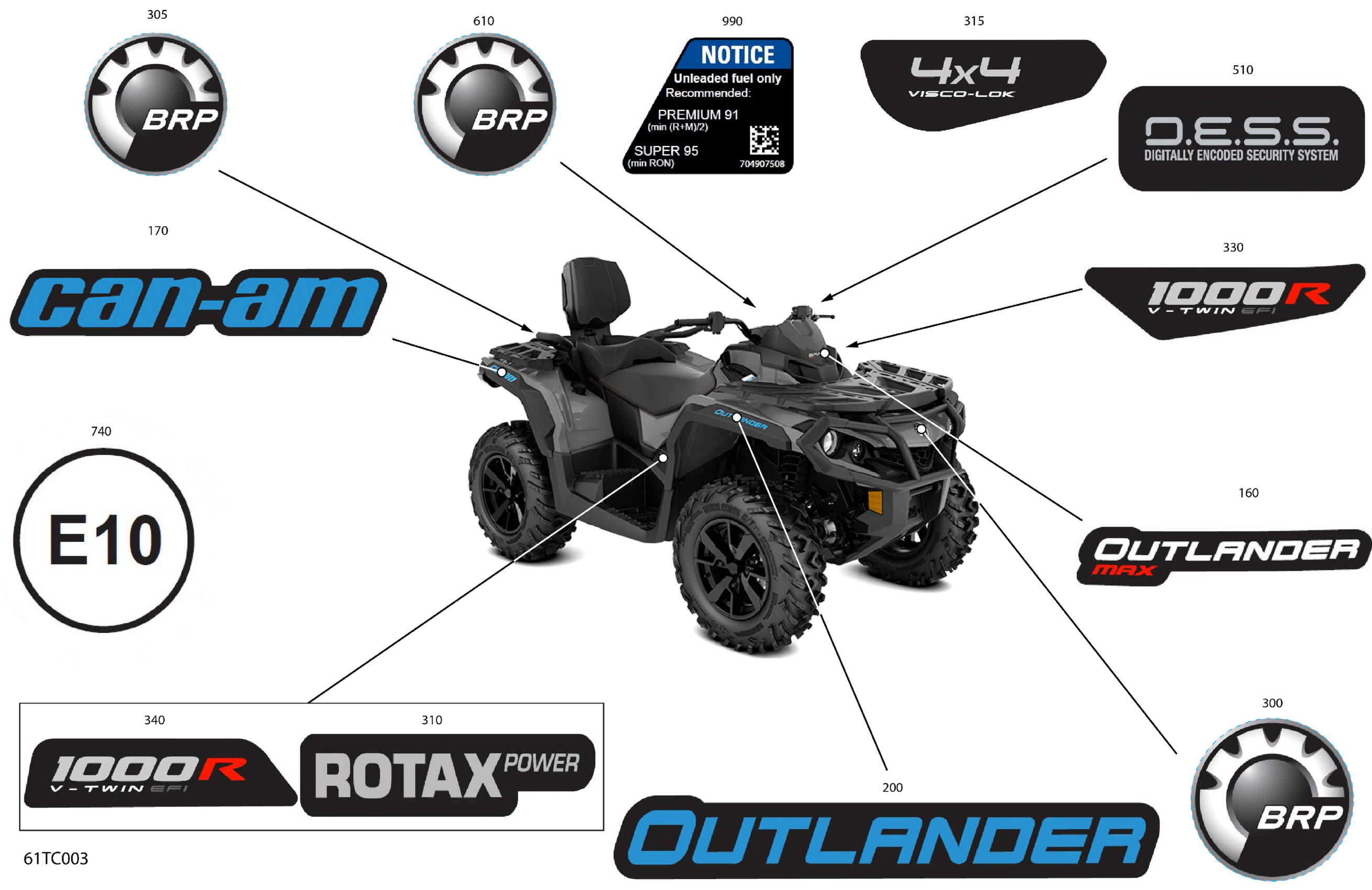 Can-Am Outlander MAX 1000R EFI - DPS - CE, 2023 Body - Decals Diagram