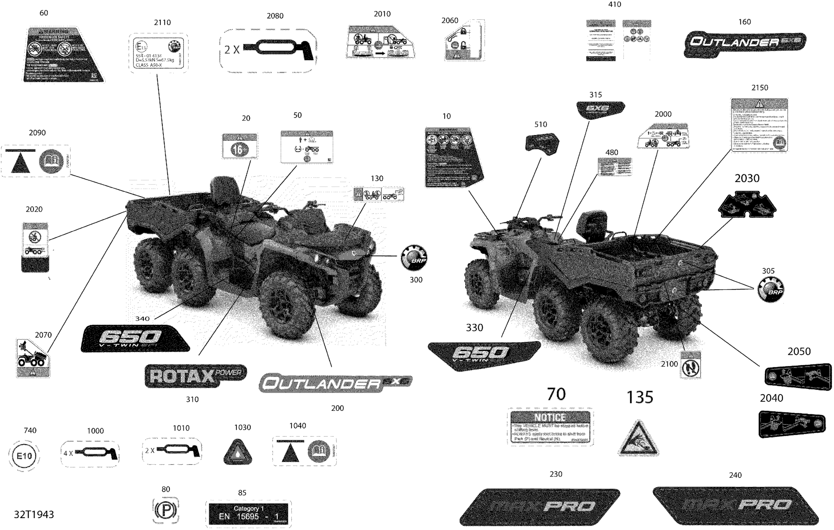 Can-Am Outlander MAX 6X6 - 1000 EFI - T3, 2019 Decals Outlander MAX - 6X6 - Pro Nordic Diagram