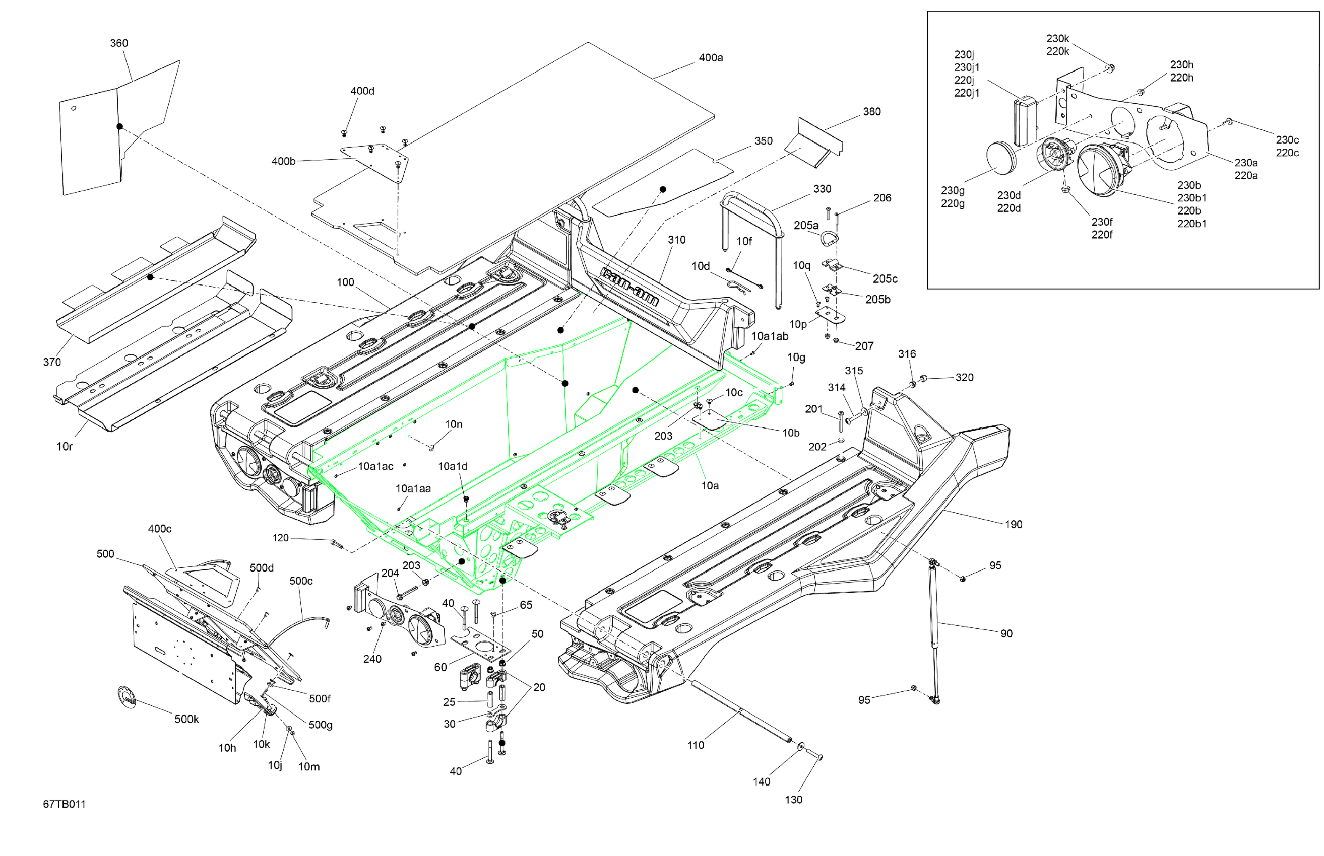Can-Am Outlander T MAX 6X6 - 650 EFI - XU+ - T Regulation, 2022 Body - Cargo Platform Diagram