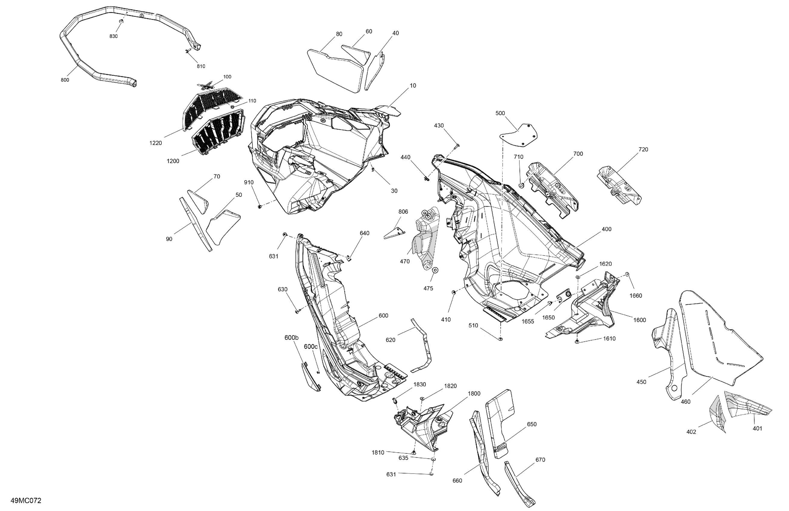 Ski-Doo 006 - RENEGADE 900 ACE TURBO R - XRS - Europe, 2023 07- Body - Bottom Pan Diagram