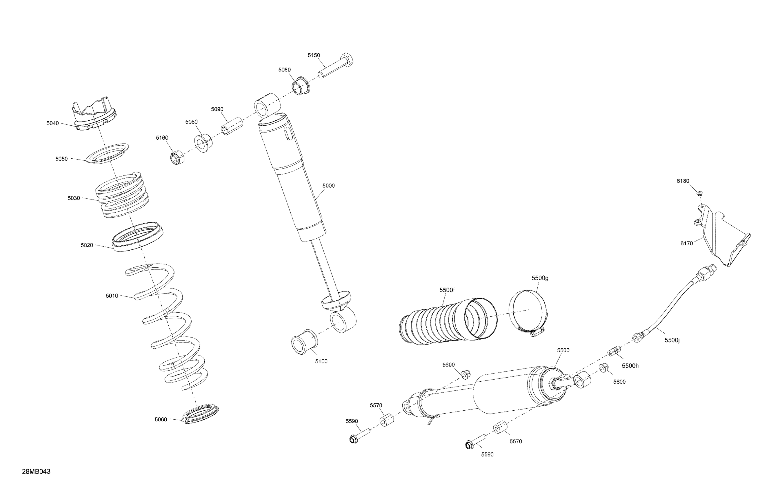 Ski-Doo EXPEDITION SE 600R E-TEC - 2022 Suspension - Rear Shocks Diagram