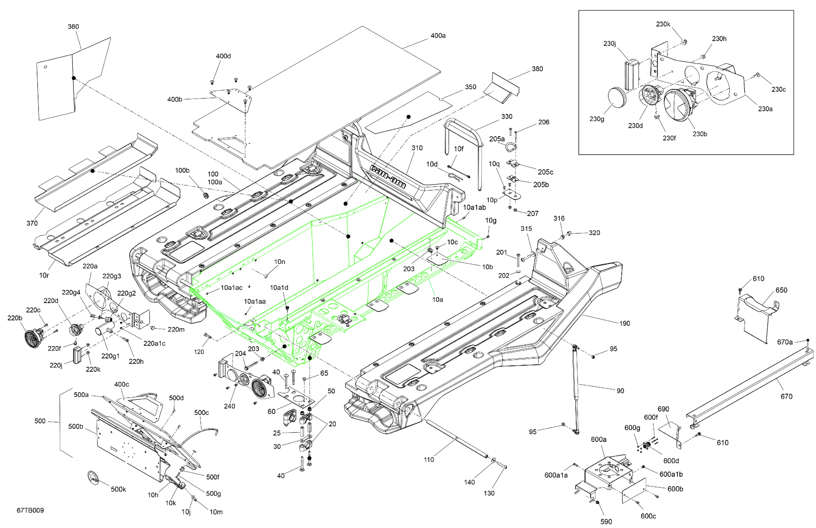 Can-Am Outlander T MAX 6X6 - 650 EFI - XT - T Regulation, 2022 Body - Cargo Platform Diagram