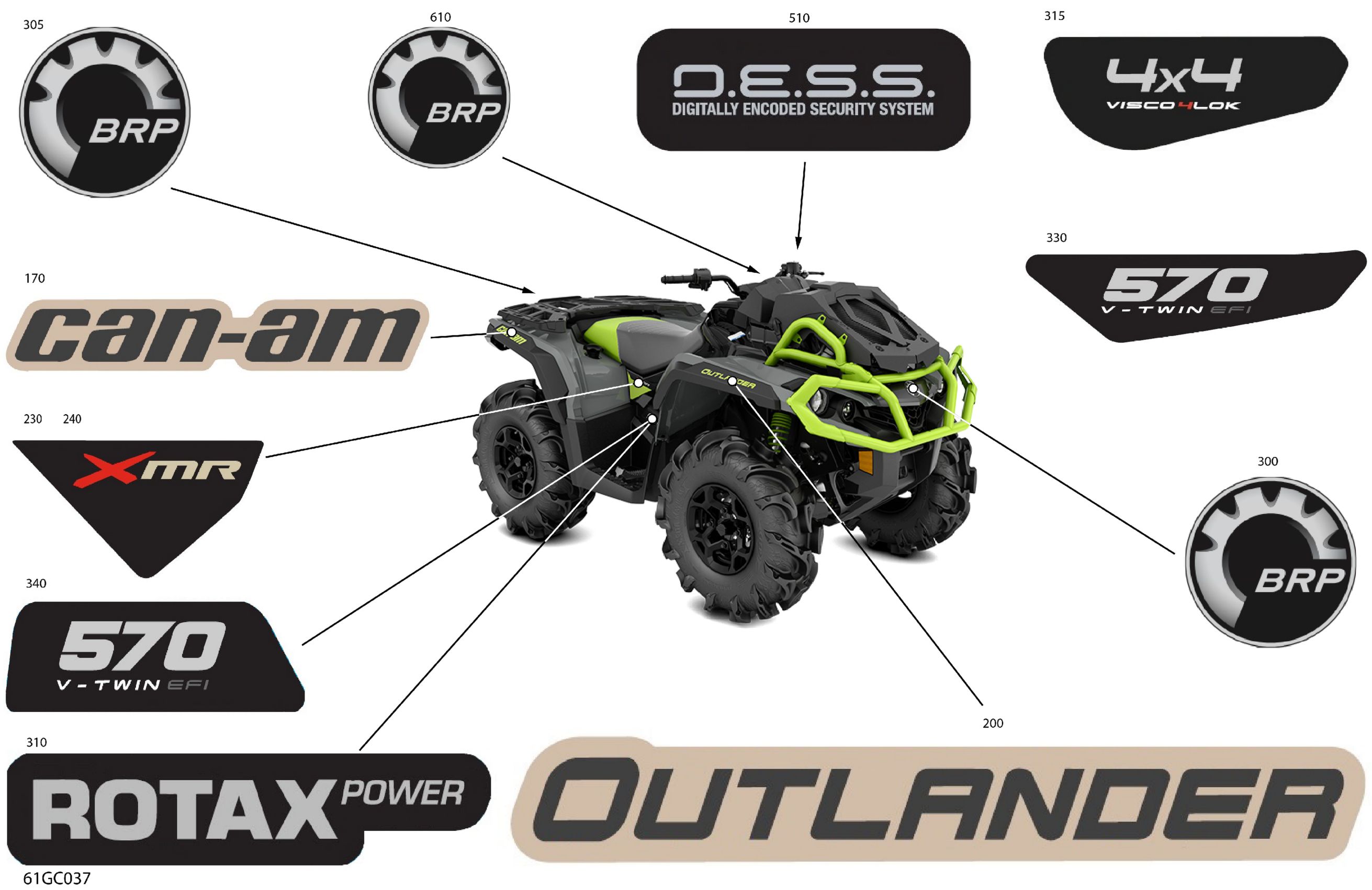 Can-Am Outlander 570 EFI - XMR - 2023 Body - Decals Diagram