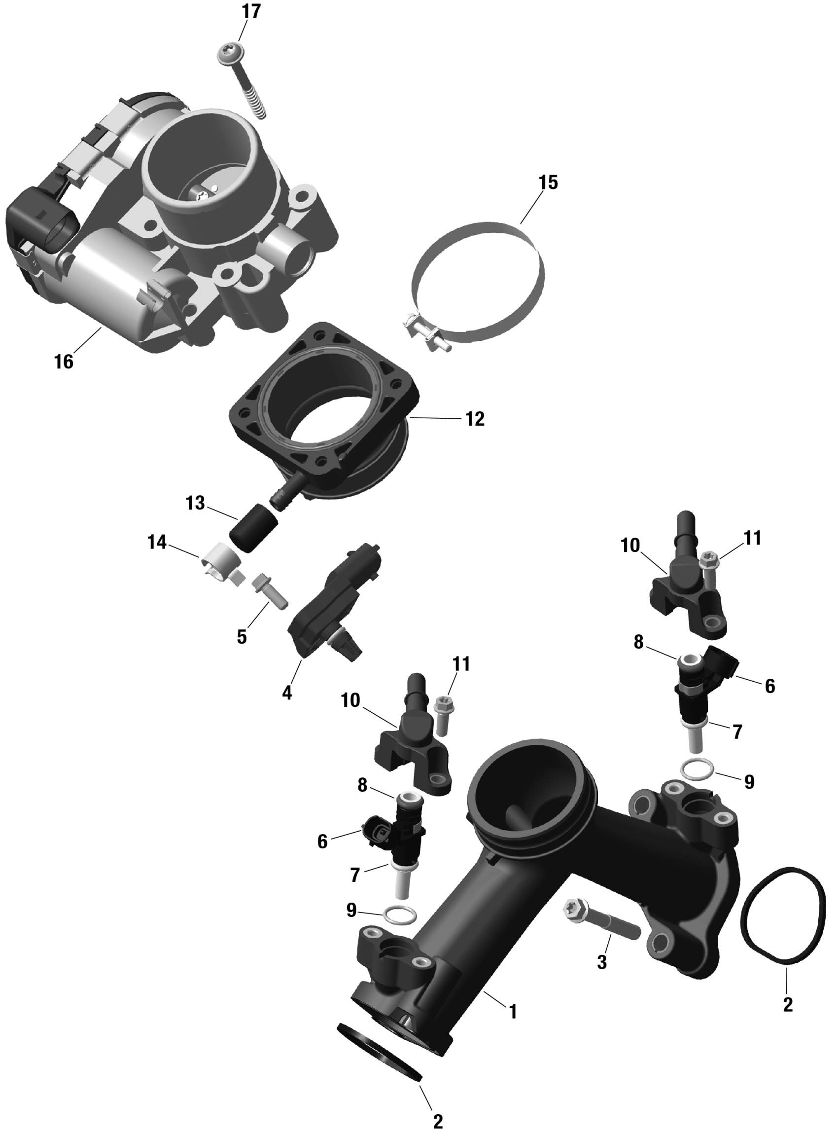 Can-Am Outlander MAX 1000R EFI - LTD - CE, 2023 ROTAX - Air Intake Manifold And Throttle Body Diagram