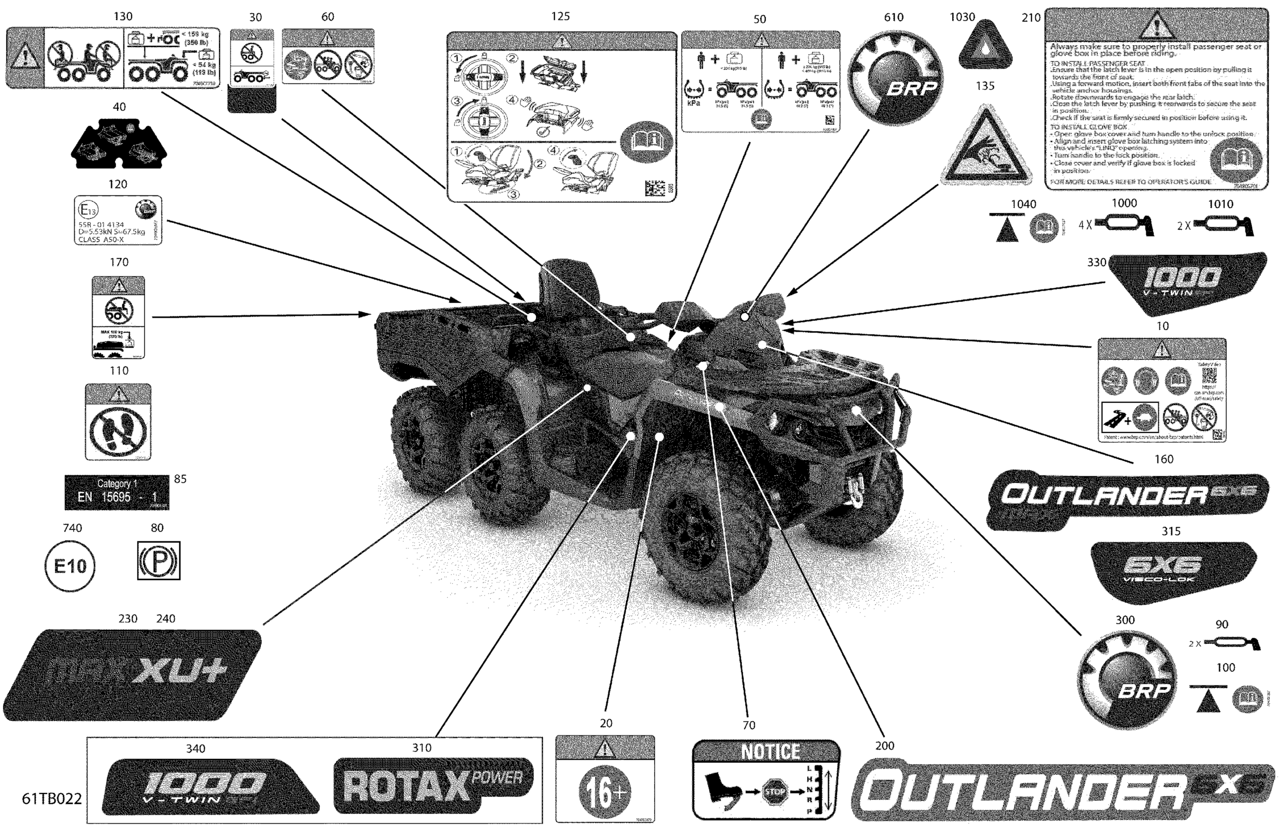 Can-Am Outlander T MAX 6X6 - 1000 EFI - XU+ - T Regulation, 2022 Body - Decals Diagram