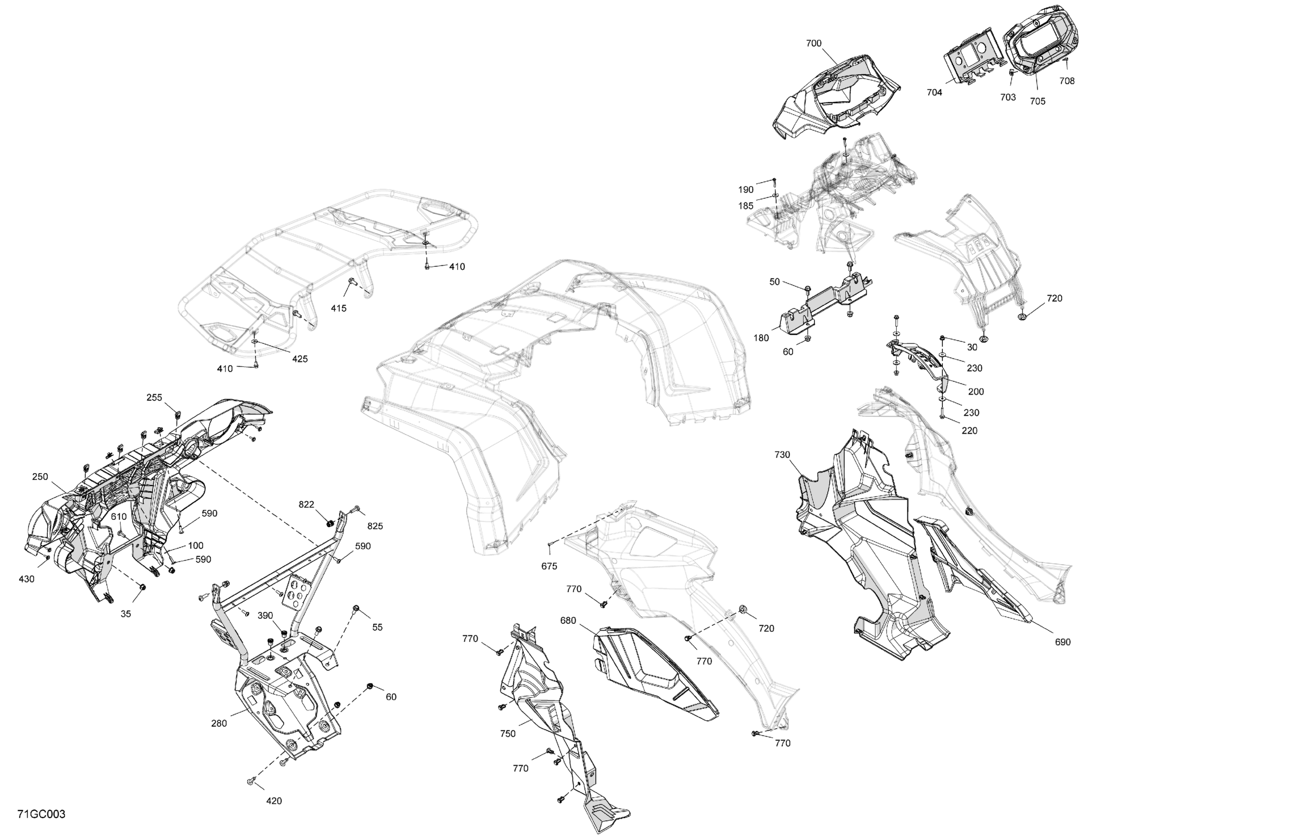 Can-Am Outlander T MAX 450 EFI - DPS - T Regulation, 2023 Body - Front Section Diagram
