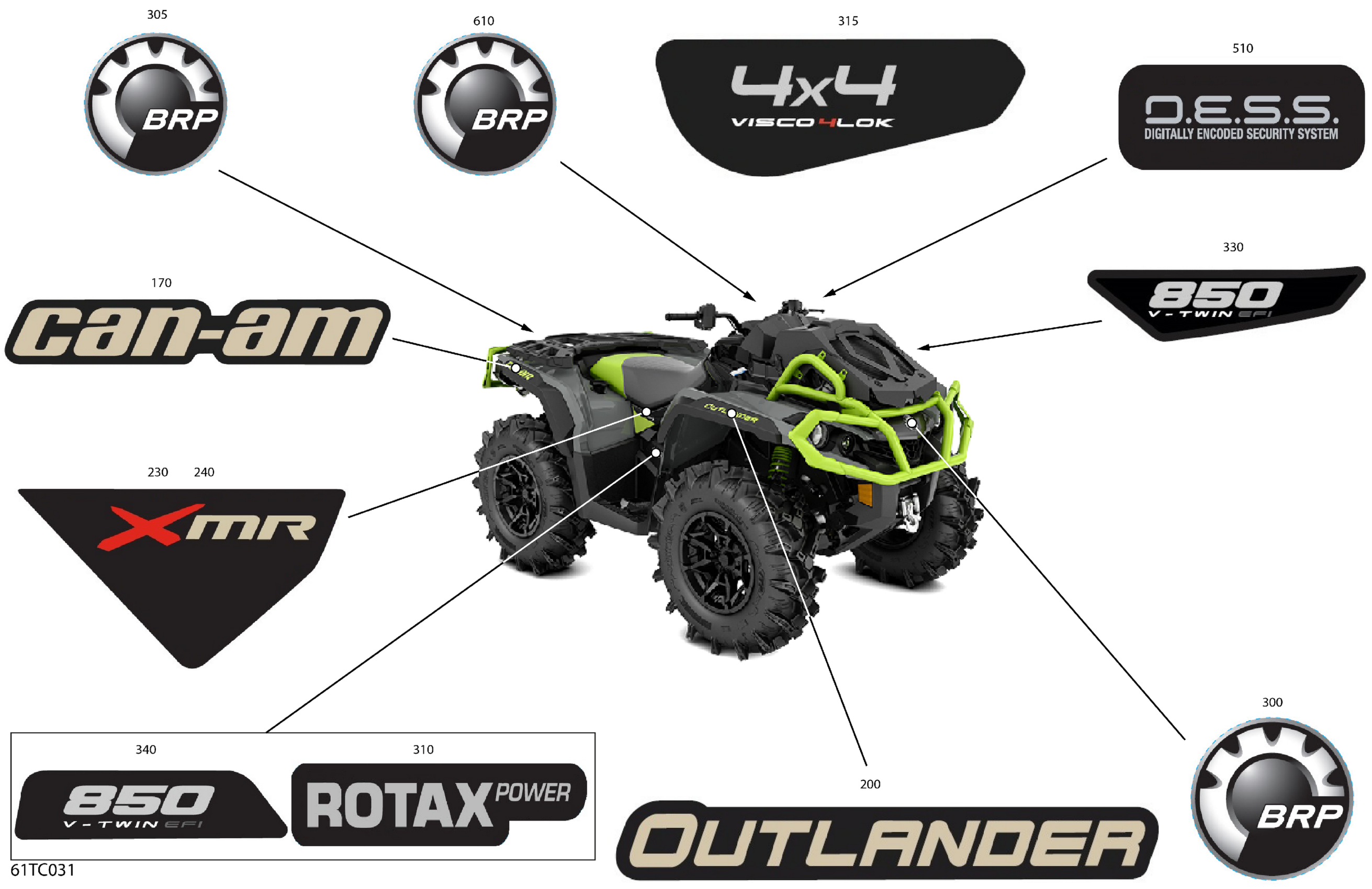 Can-Am Outlander 850 EFI - XMR - 2023 Body - Decals Diagram
