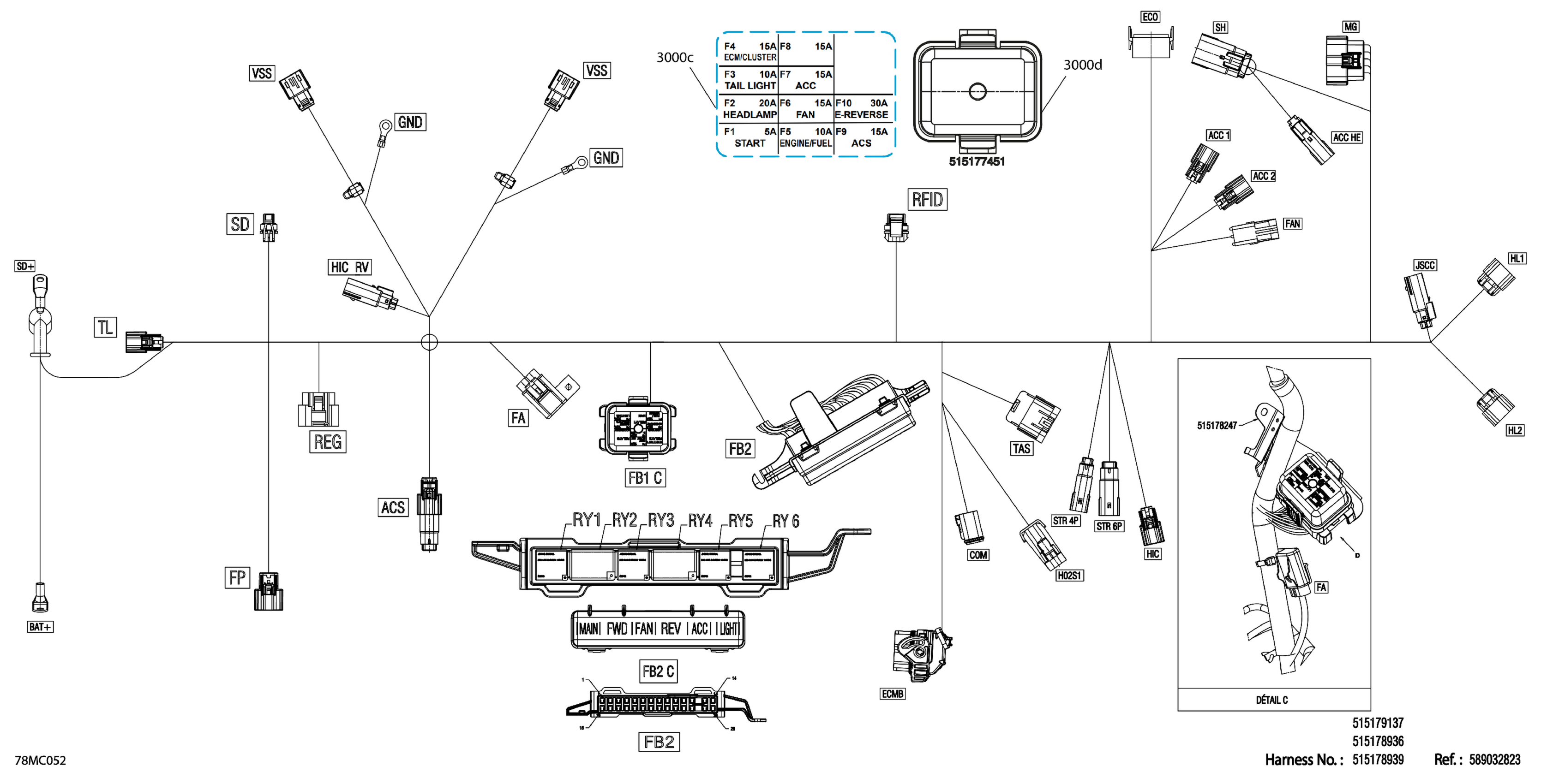 Ski-Doo 010 - SKANDIC LE 900 ACE - 24 INCH - (ANPH) - North America, 2023 08- Electric - Main Harness - 515178936 Diagram