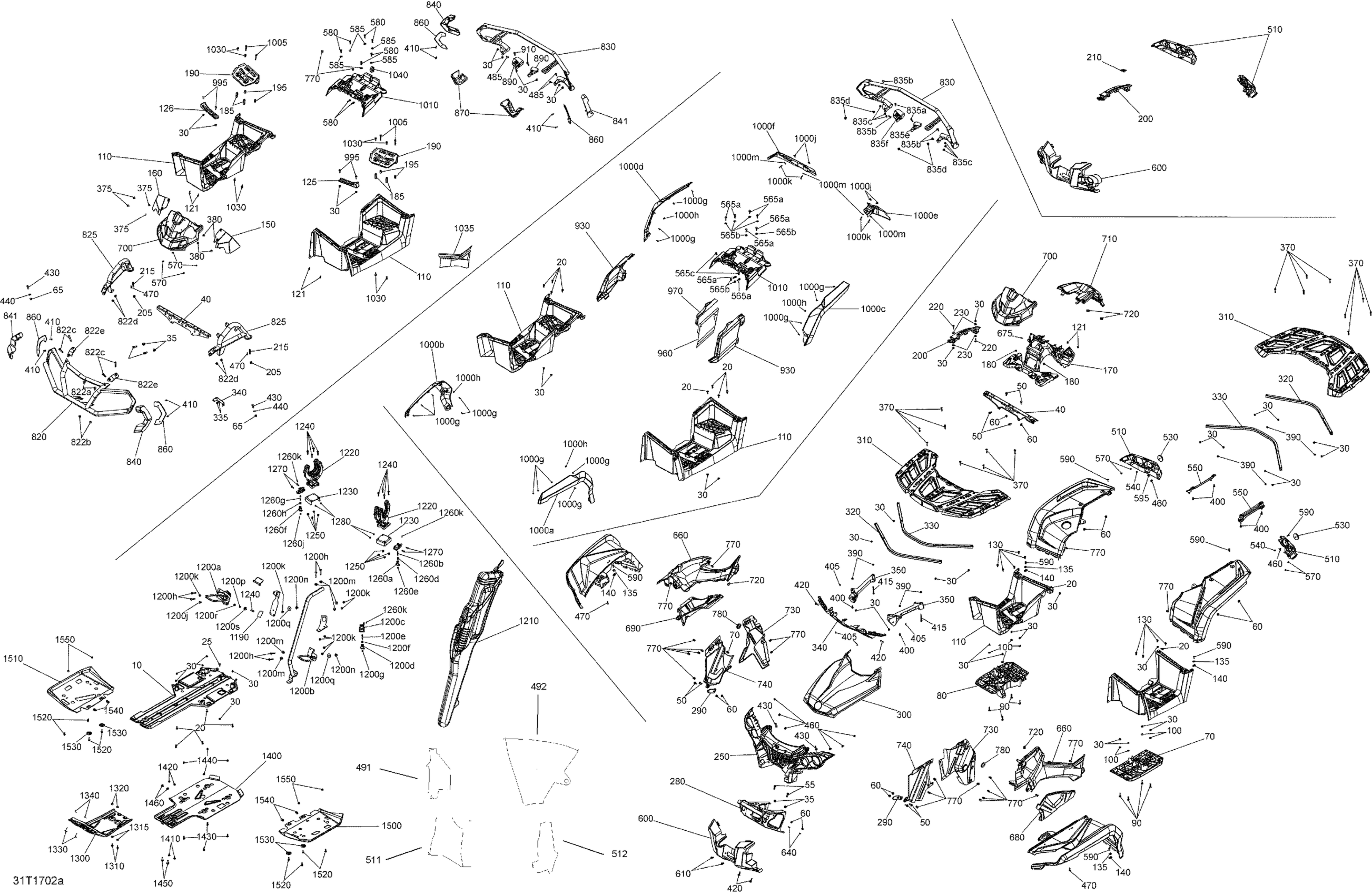 Can-Am Outlander - 1000R EFI - XMR Package 0005KHA00 0005KHC00 0005KHD00 Body And Accessories - without Fenders All Models Diagram