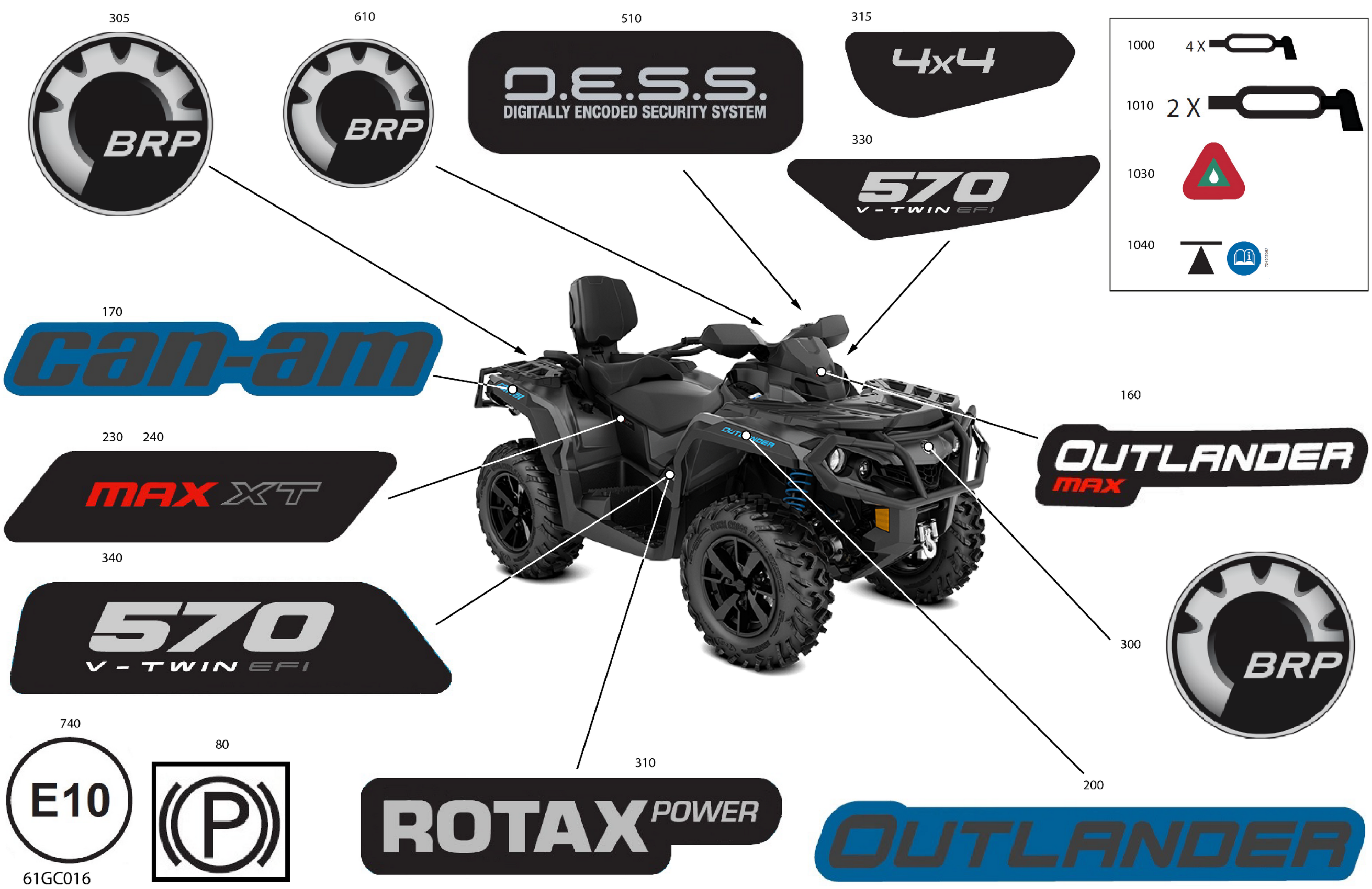 Can-Am Outlander T MAX 570 EFI - XT - T Regulation, 2023 Body - Decals Diagram