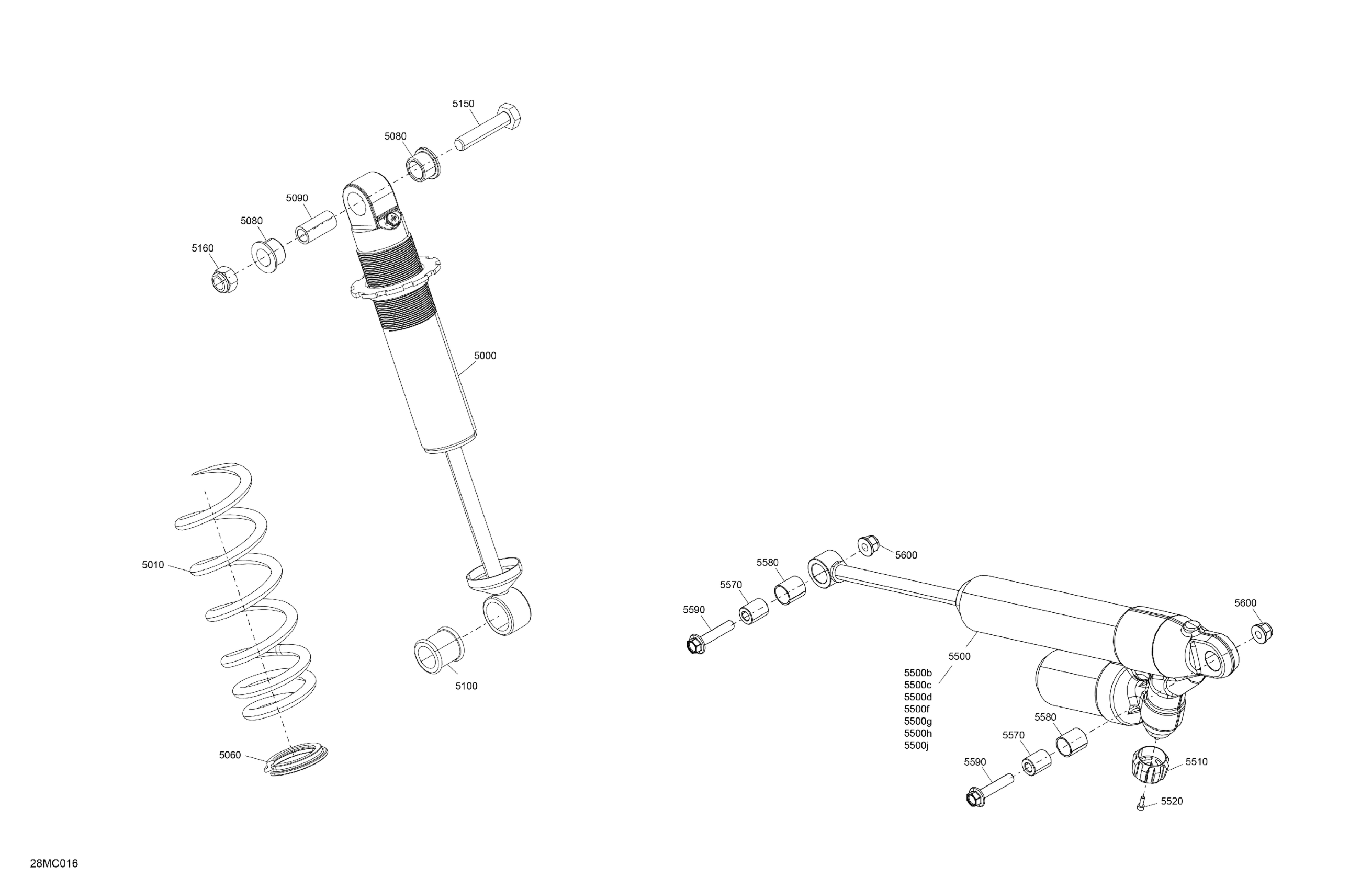 Ski-Doo 011 - RENEGADE 850 E-TEC - X - North America, 2023 05- Suspension - Rear Shocks Diagram