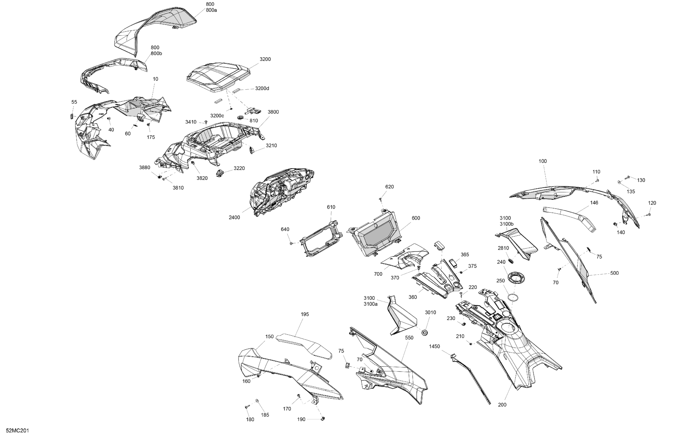 Ski-Doo 011 - RENEGADE 850 E-TEC - X - North America, 2023 07- Body - Hood - VIP Medium Gauge Diagram