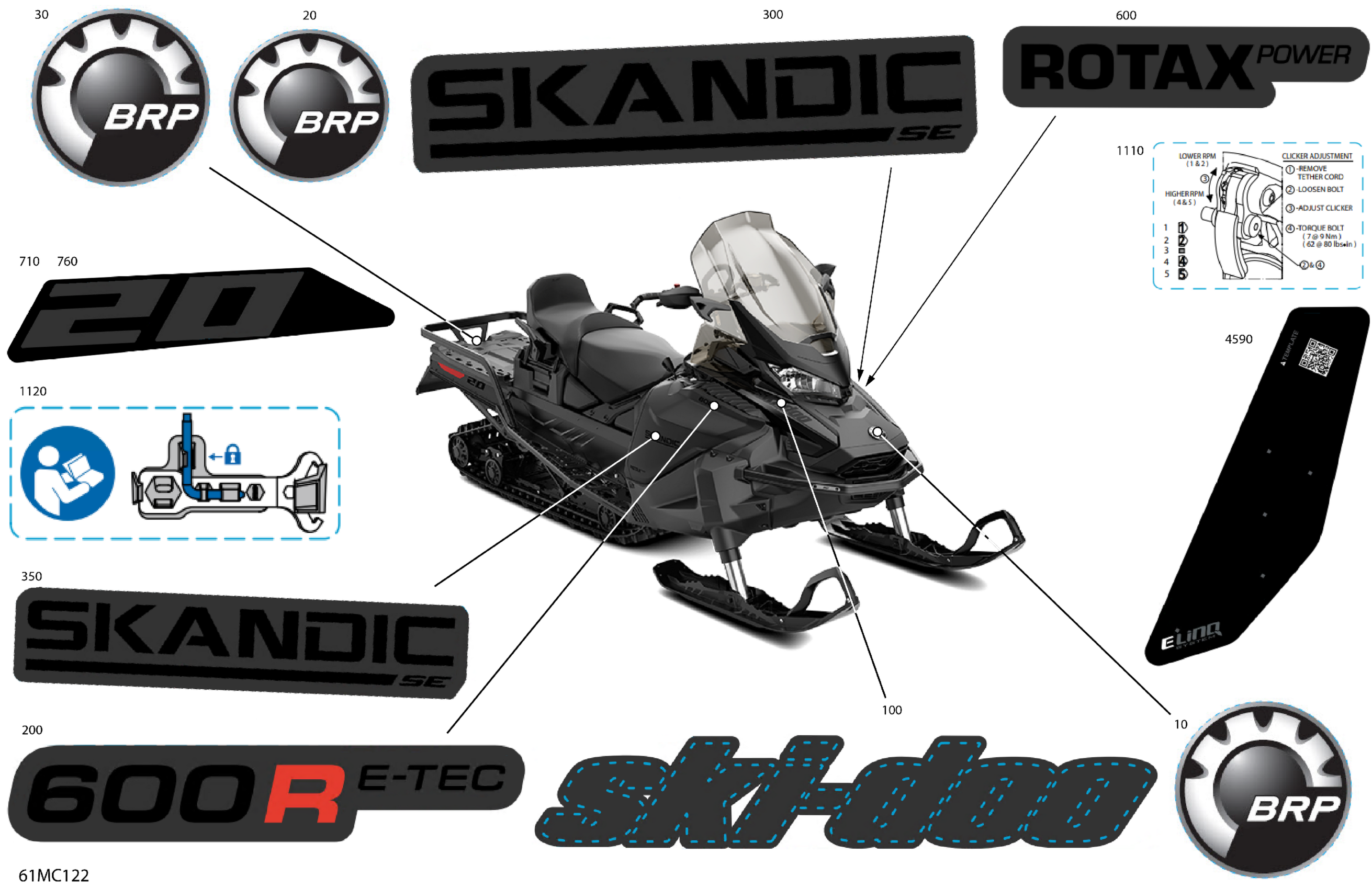 Ski-Doo 011 - SKANDIC SE 600R E-TEC - 20 INCH - North America, 2023 07- Body - Decals Diagram