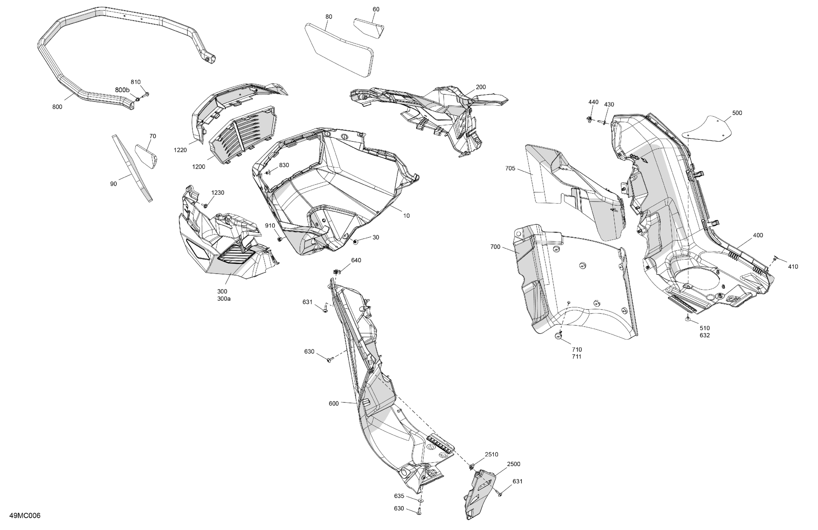 Ski-Doo 011 - SUMMIT 850 E-TEC - EXPERT - Package 154" (TGPR) - North America, 2023 07- Body - Bottom Pan Diagram
