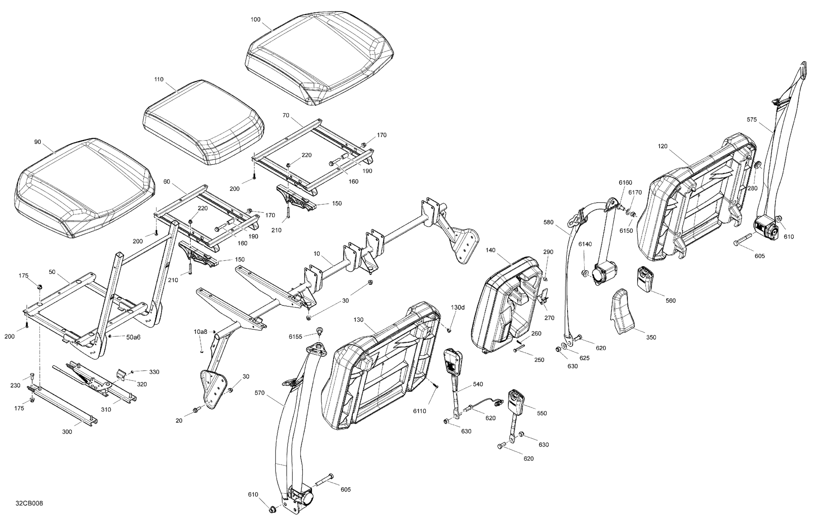 Can-Am Defender MAX HD10 - LTD CAB (6MNG-H-J-K-L-M) - 2022 Body - Seat - Front Section Diagram