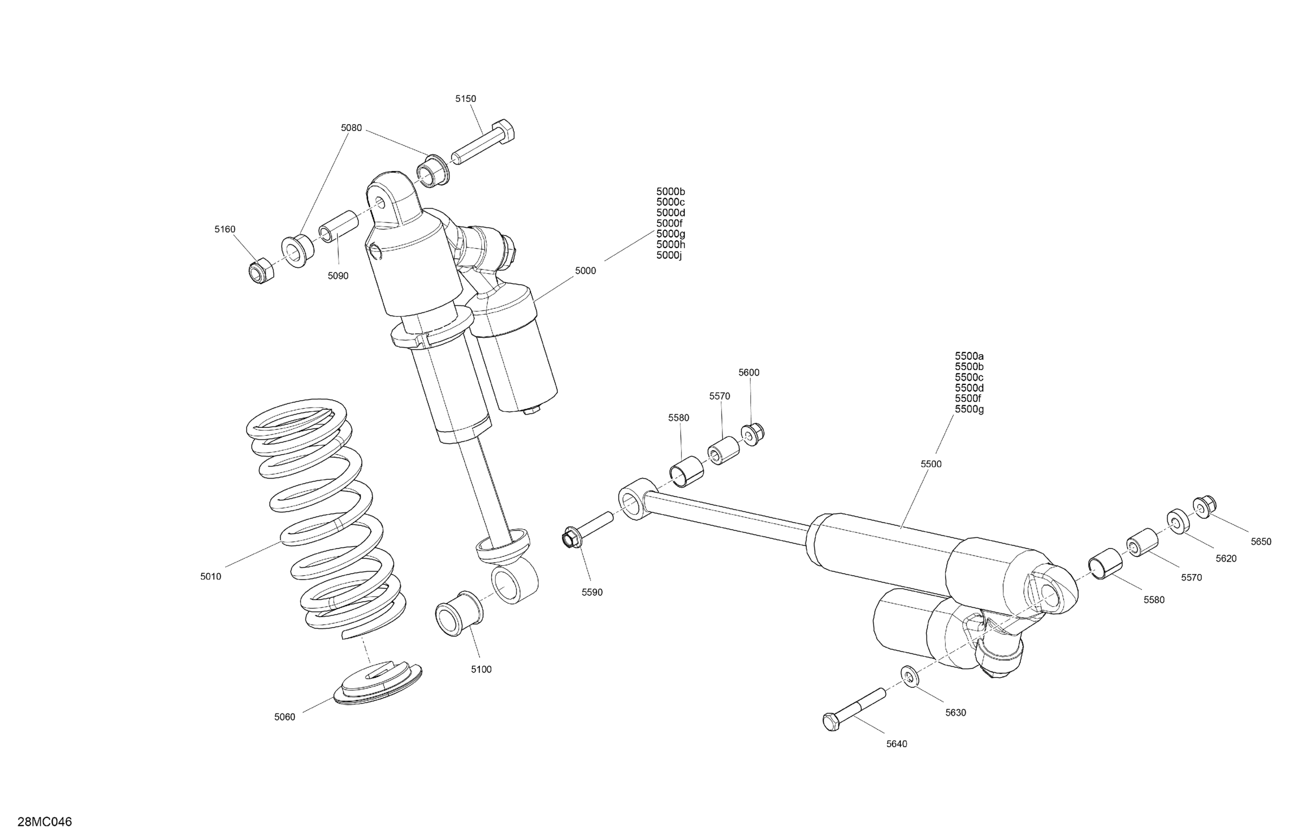 Ski-Doo MXZ 600RS - 2023 Suspension - Rear Shocks Diagram