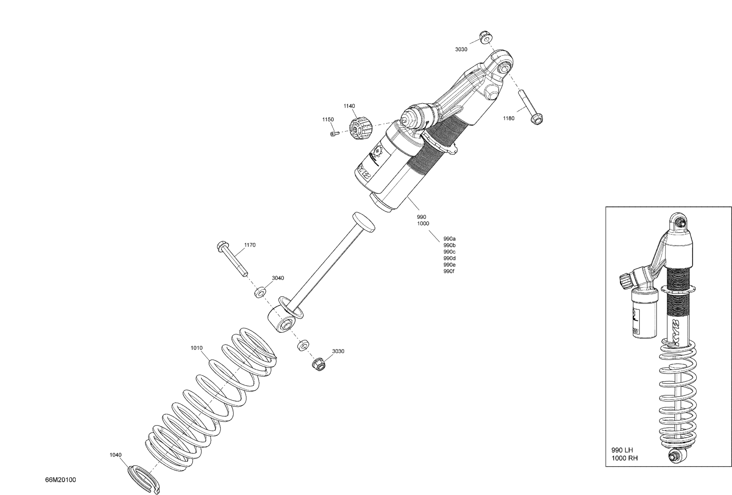 RH Front Shock | Included 990 to 990f