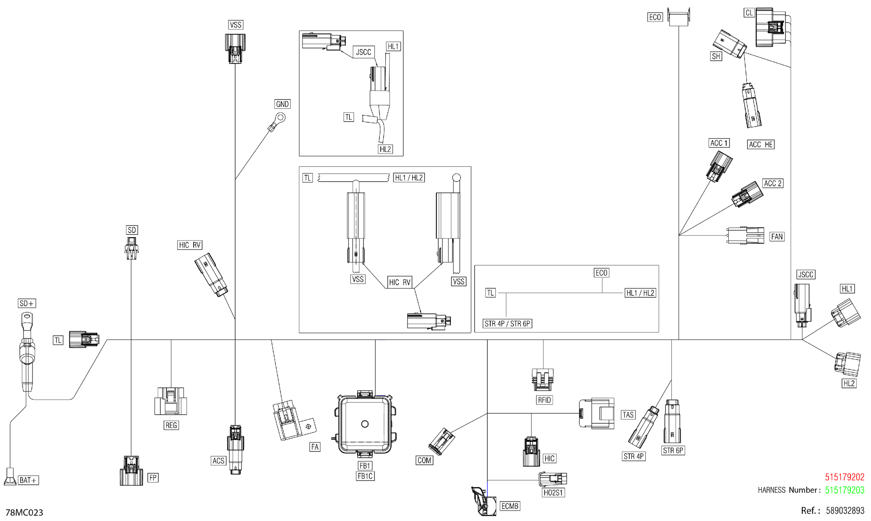 Ski-Doo EXPEDITION LE 900 ACE TURBO - 24 INCH - 2023 Electric - Main Harness - 515179202 Diagram