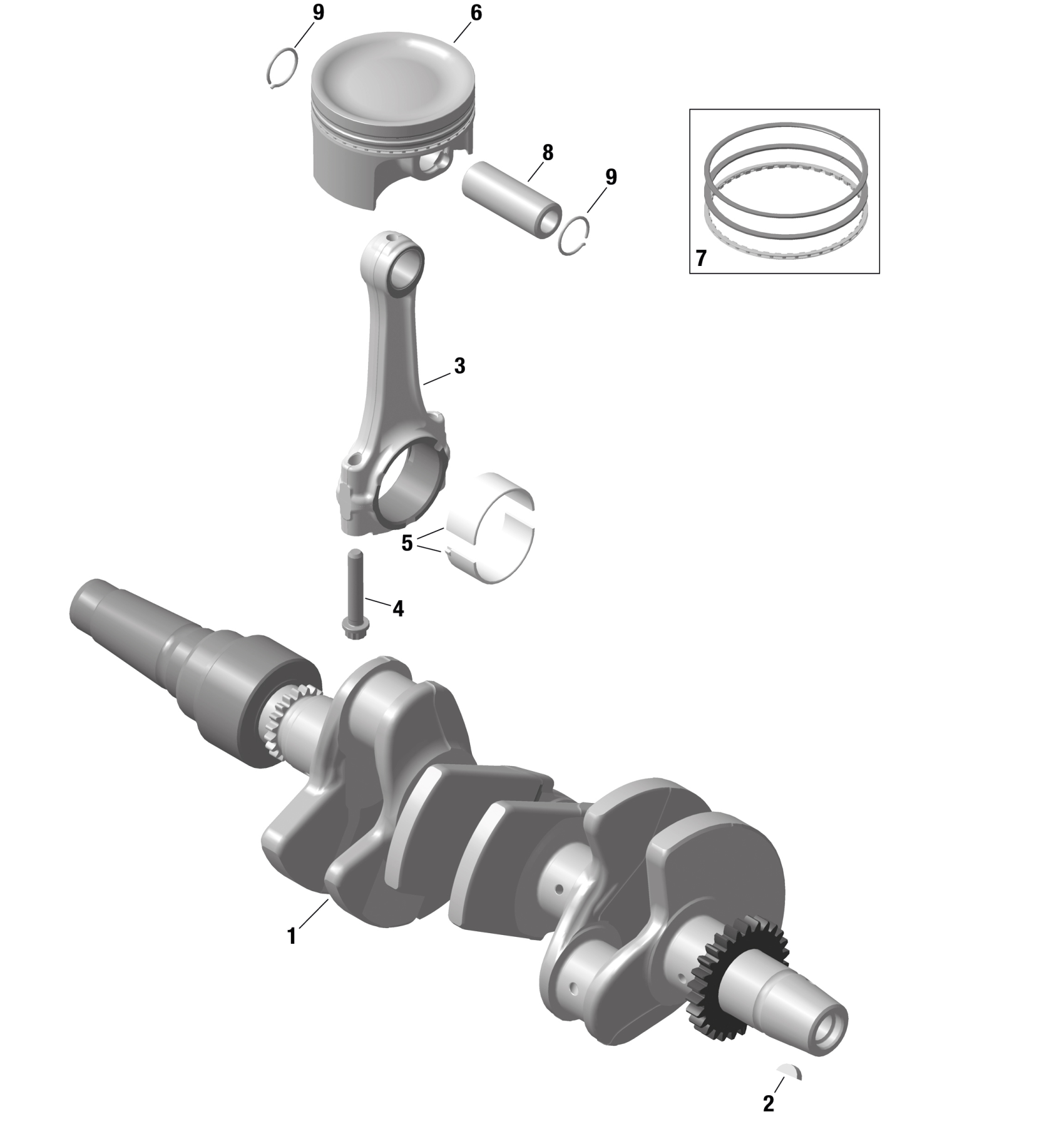 Ski-Doo RENEGADE 900 ACE TURBO - ADRENALINE - 2023 ROTAX - Crankshaft and Pistons Diagram