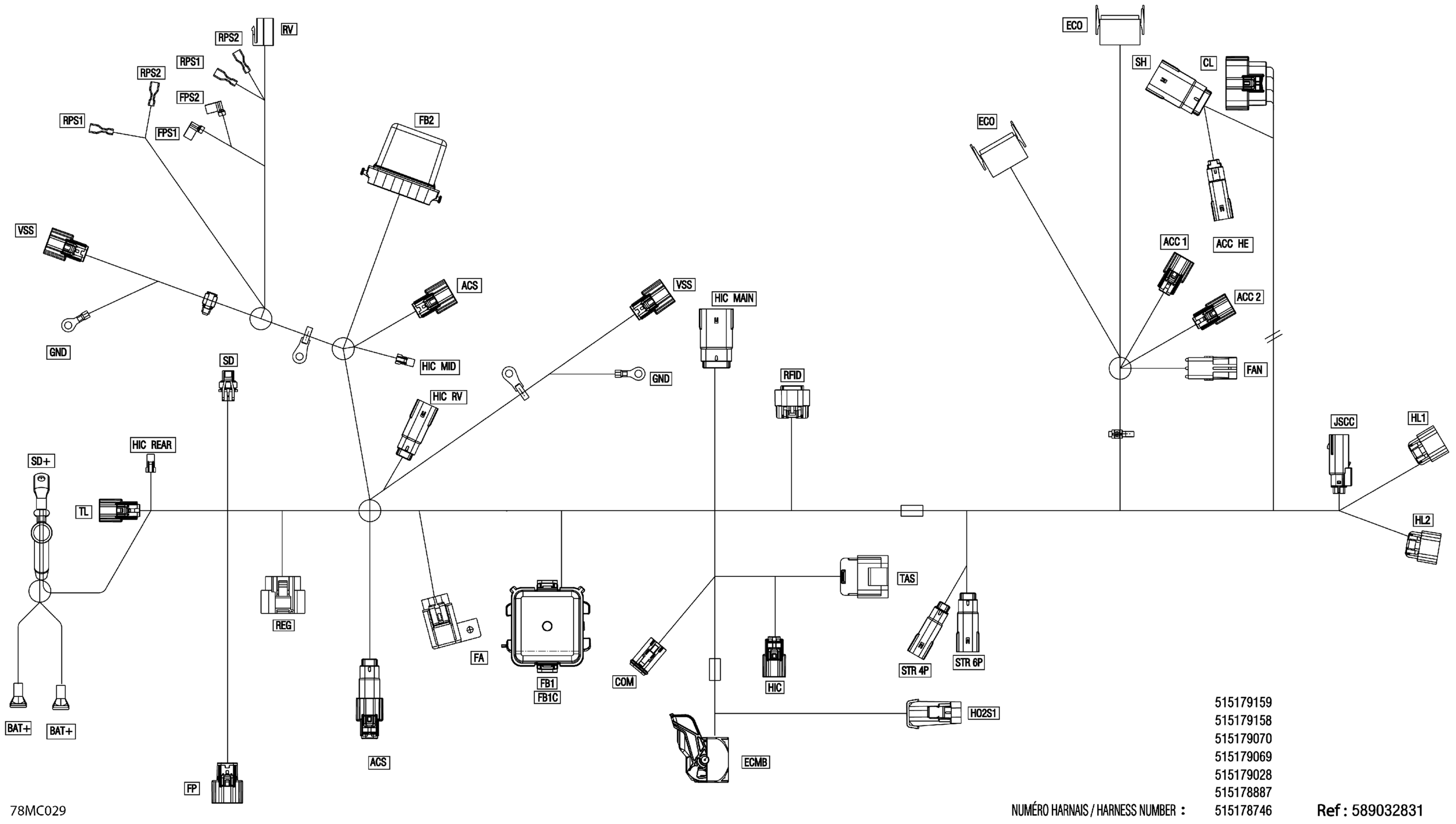 Ski-Doo RENEGADE 900 ACE TURBO - ADRENALINE - 2023 Electric - Main Harness - 515179069 Diagram