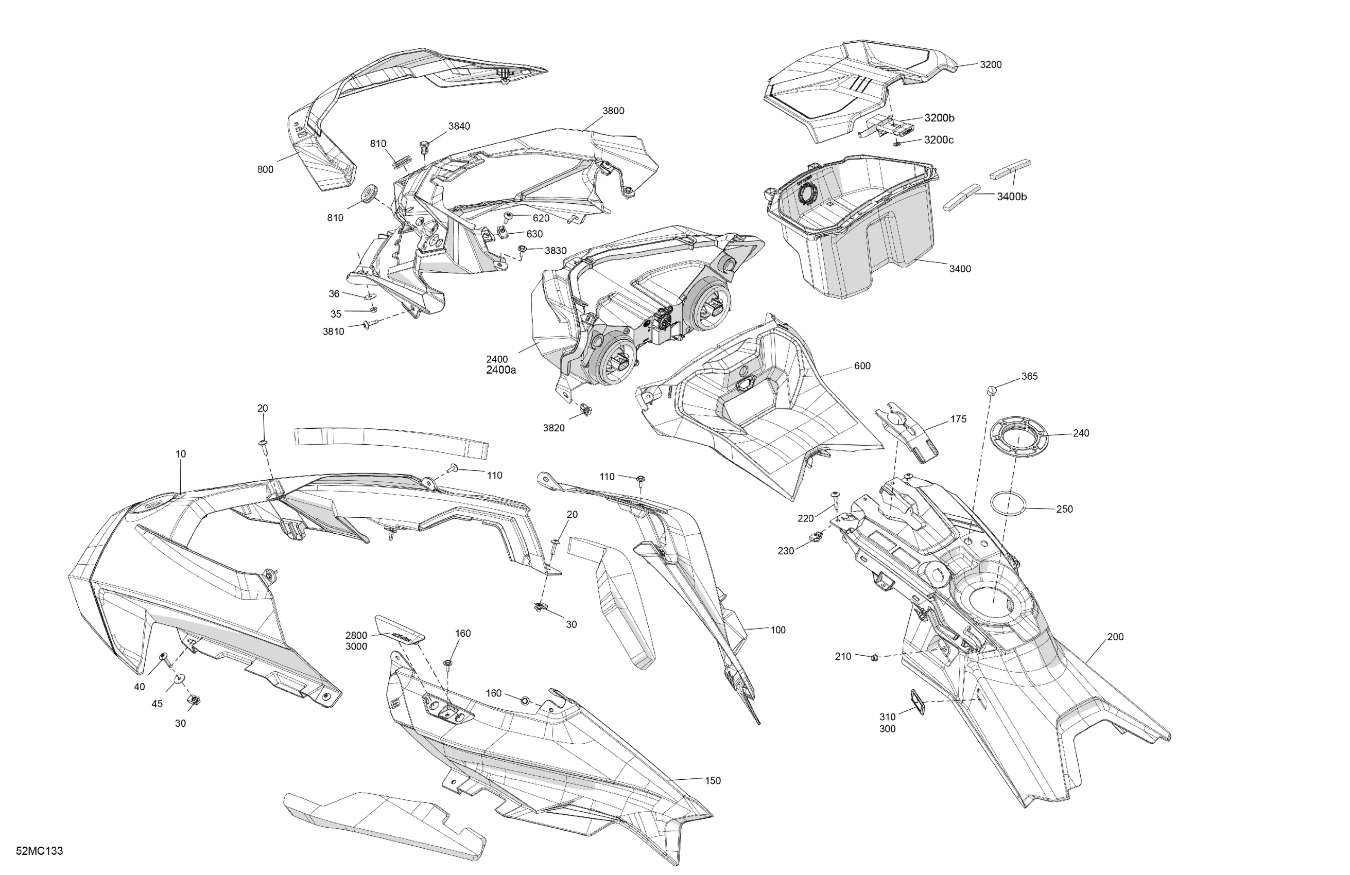 Ski-Doo 016 - SUMMIT 600 EFI - 55 - NEO+ - (TVPC) - North America, 2023 07- Body - Hood Diagram