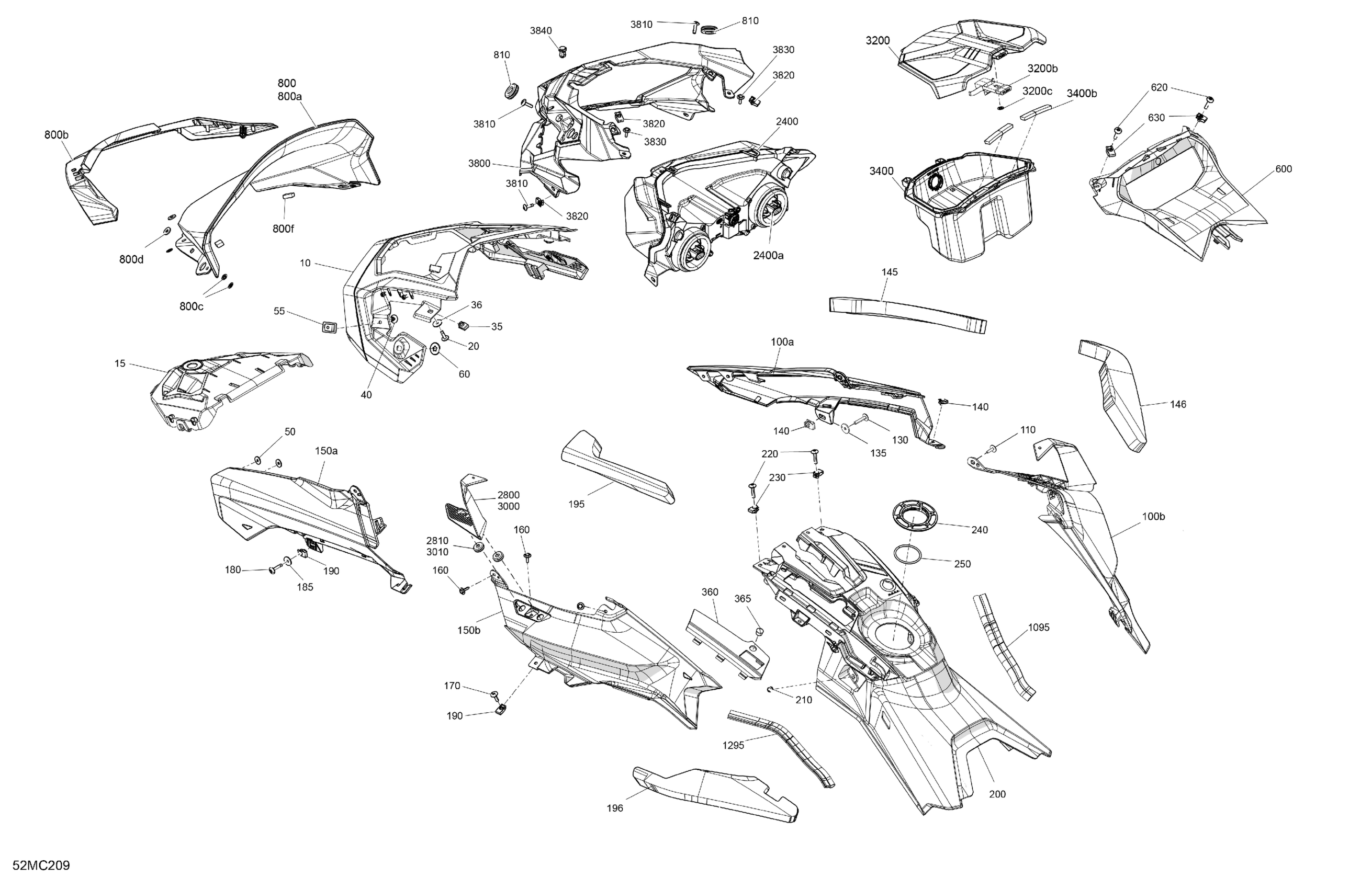 Ski-Doo 020 - RENEGADE 900 ACE TURBO R - X - North America, 2023 07- Body - Hood - VIP Medium Gauge Diagram