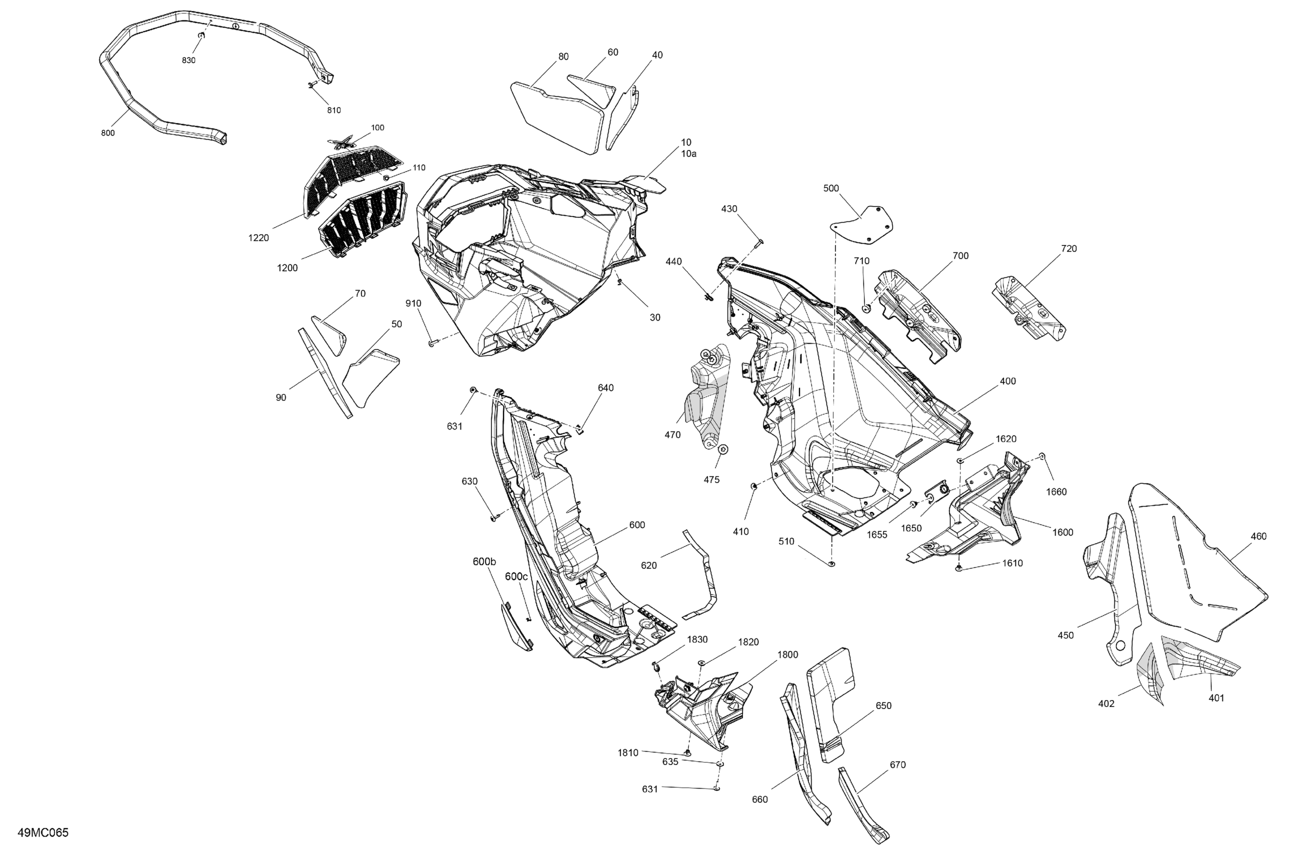 Ski-Doo 023 - RENEGADE 900 ACE TURBO R - XRS SMART-SHOX - (DBP1) - North America, 2023 07- Body - Bottom Pan Diagram