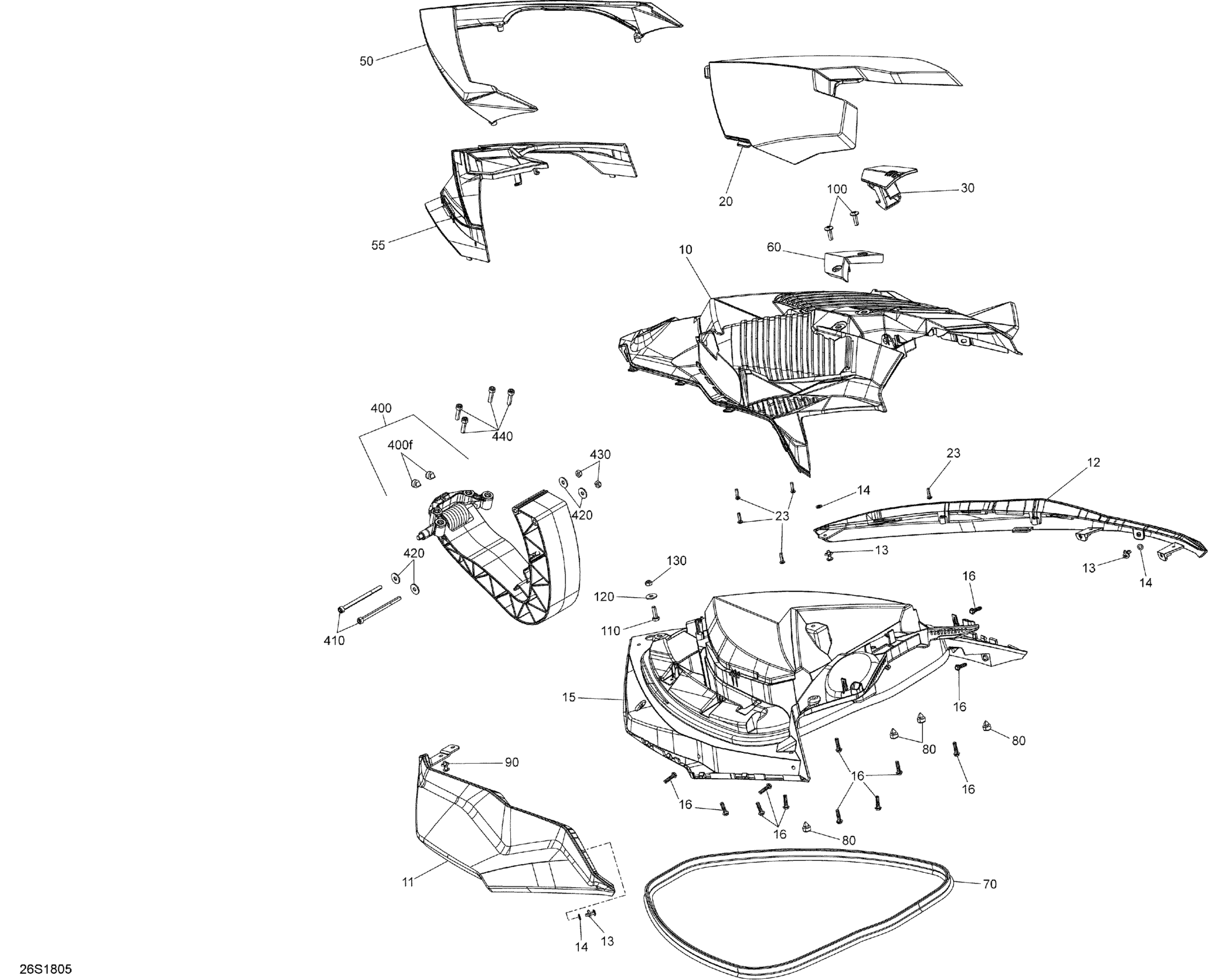 Sea-doo 1- GTR 230, 2018 09- Front Cover GTR - 230 - Package X Diagram