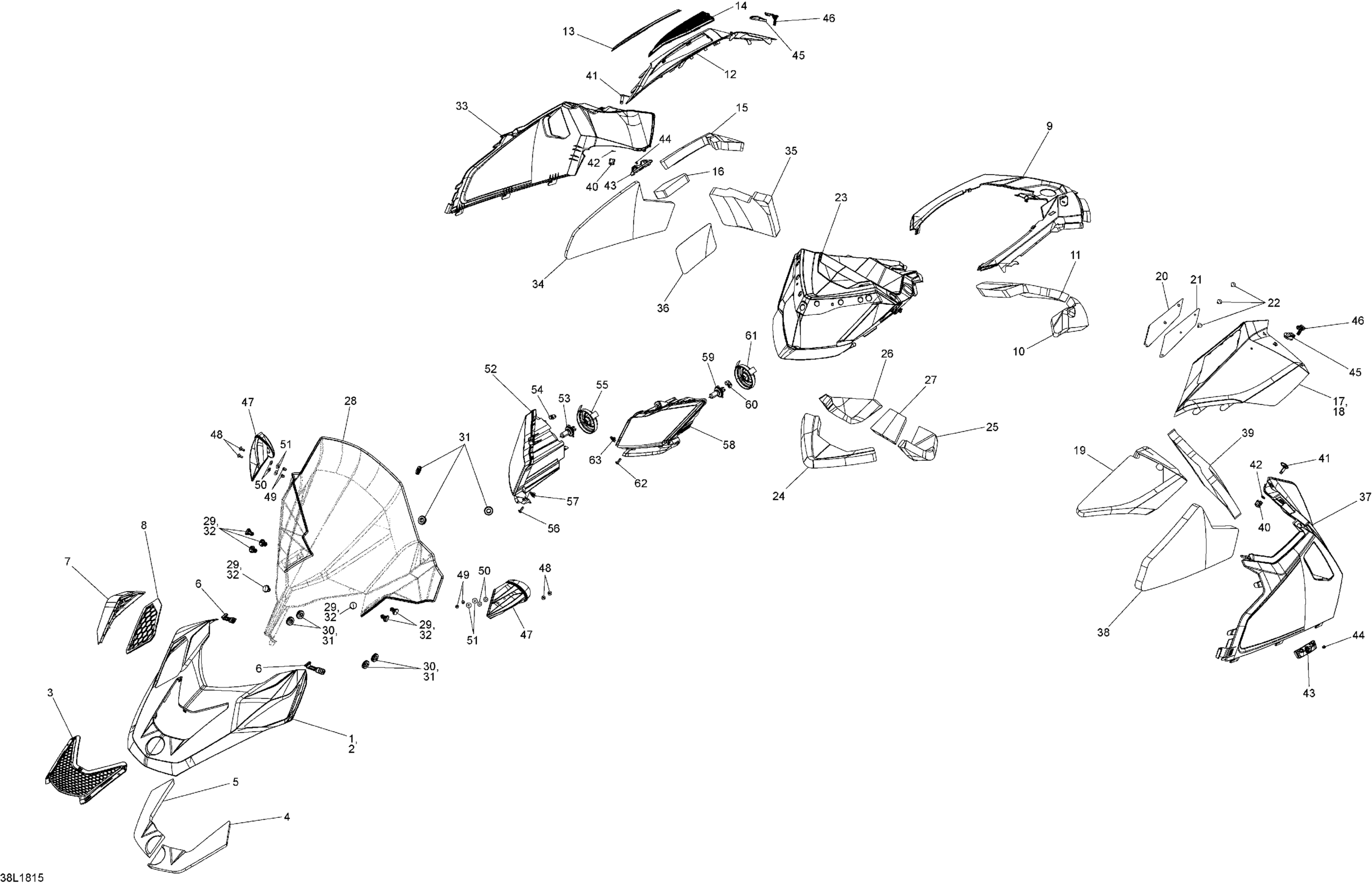 Ski-Doo SKANDIC 550F, 2018 Hood Skandic - 550F Diagram