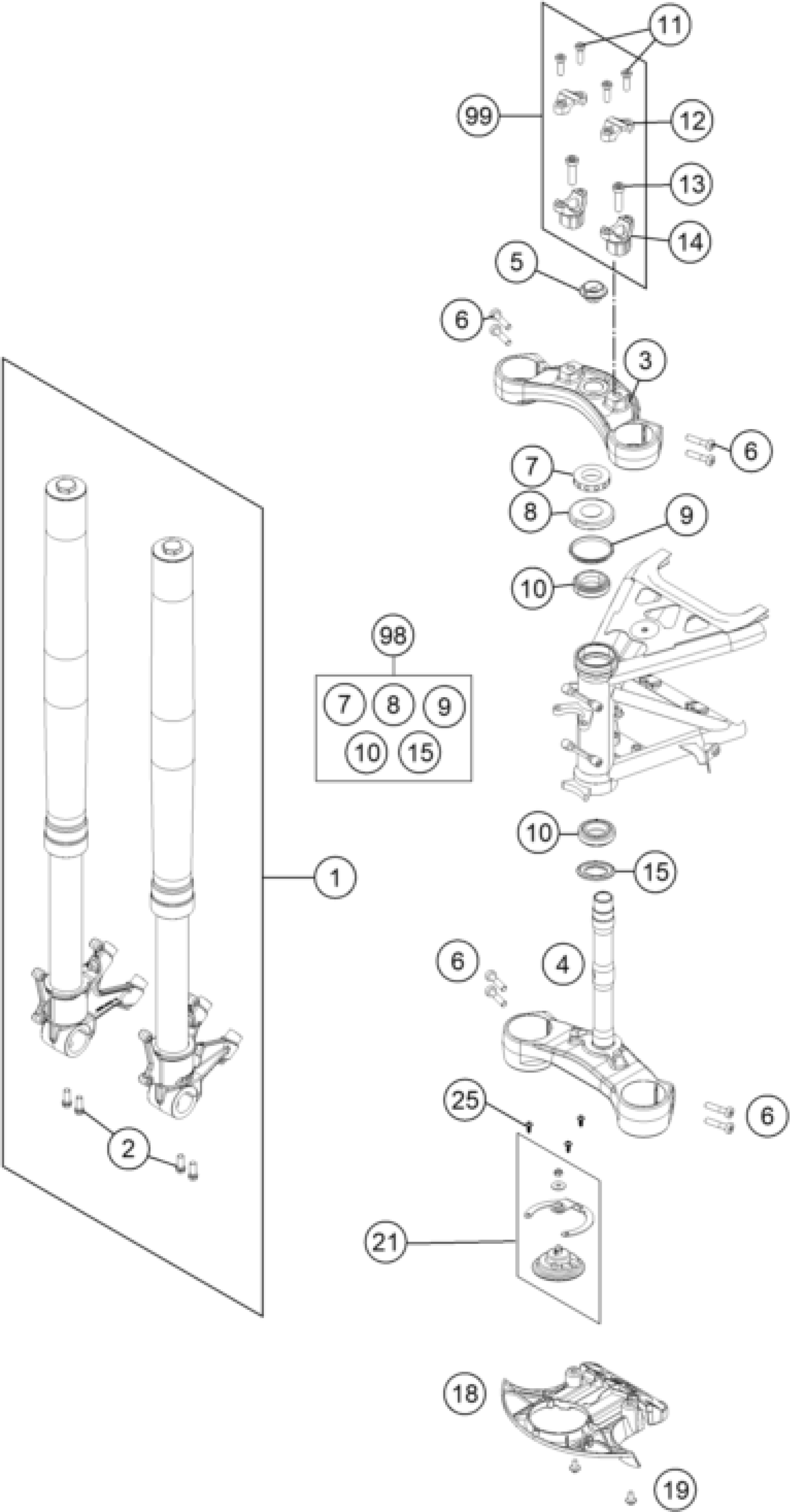 FRONT FORK, TRIPLE CLAMP