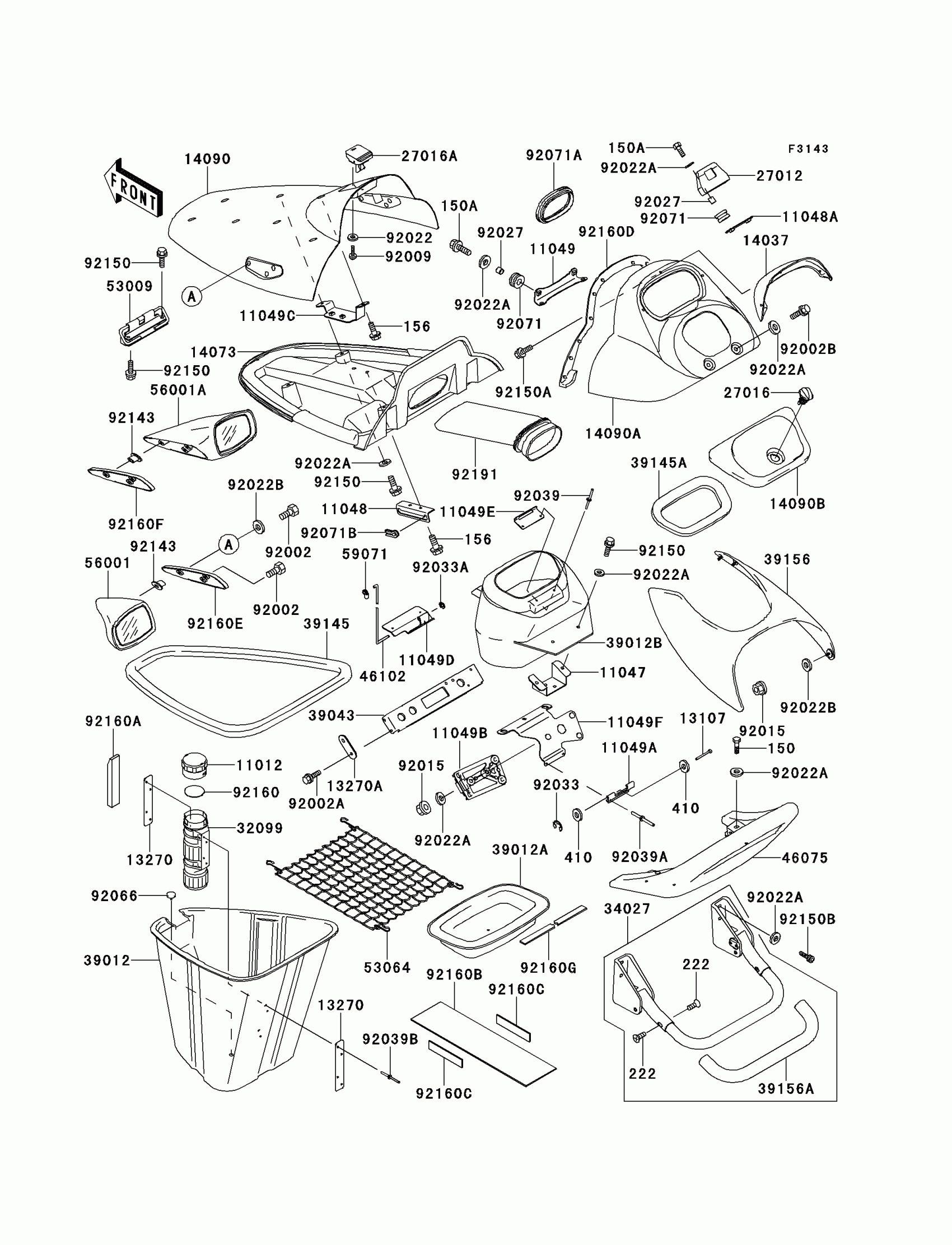 Kawasaki 1100 STX Hull Fittings Diagram