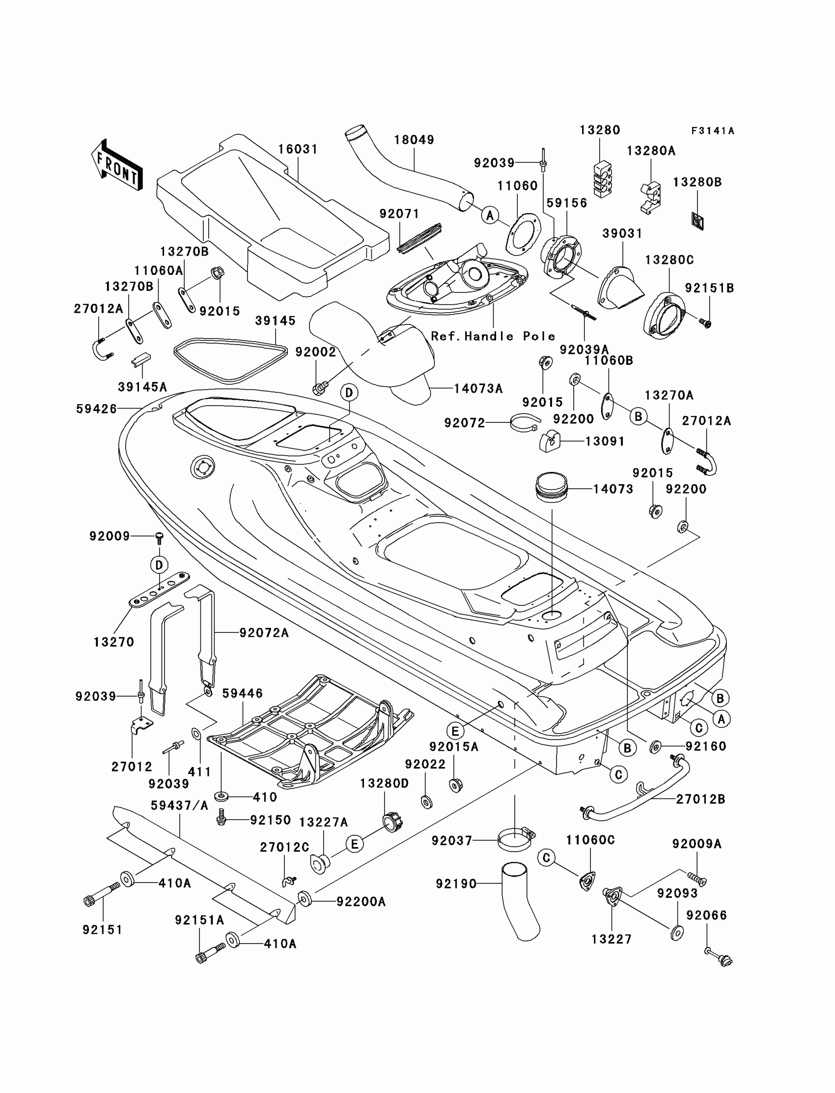 Kawasaki 1100 STX Hull(JT1100-B2) Diagram